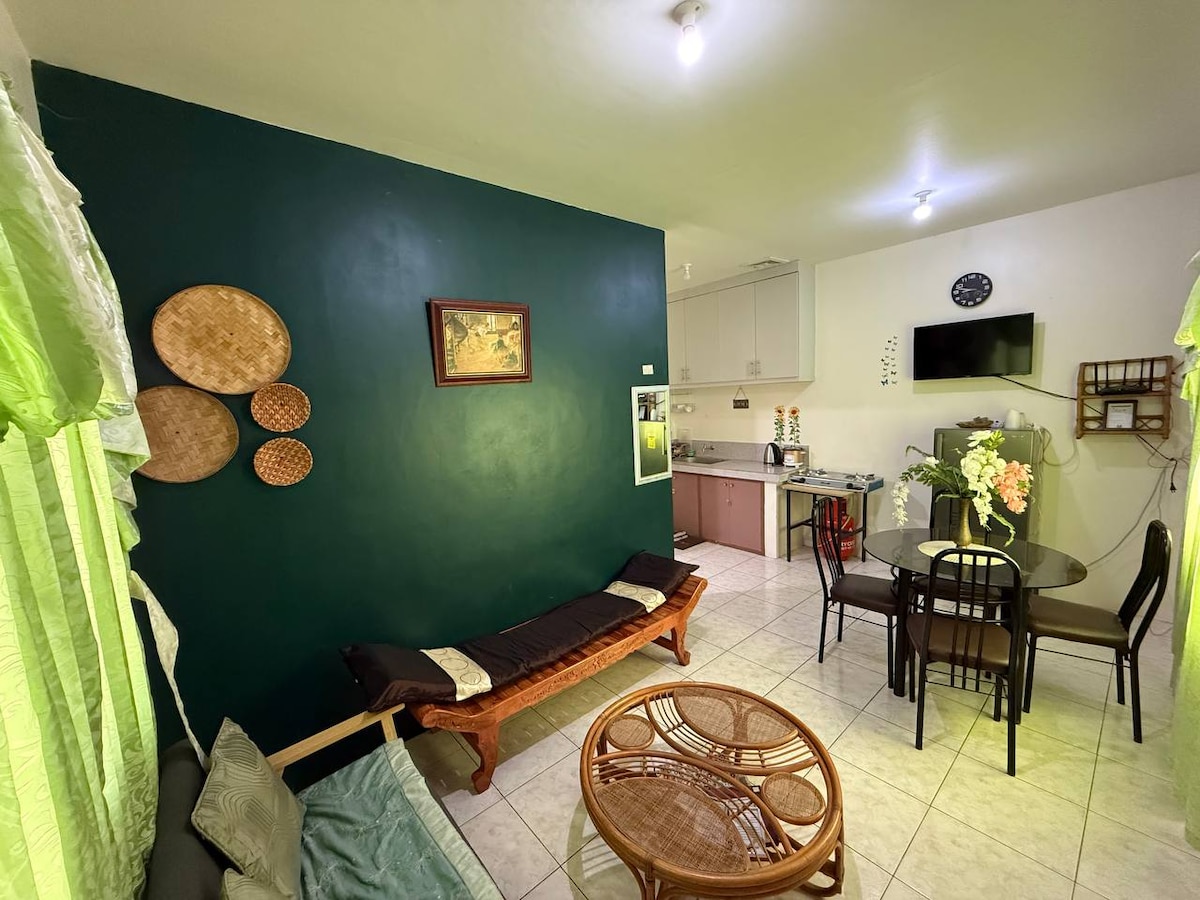 Profitez d'un séjour paisible avec vos proches dans ce studio de 38 mètres carrés avec un lit Queen Size situé au rez-de-chaussée, à quelques pas du restaurant, et disposant d'un balcon donnant sur la piscine. Des chaînes de télévision, une télévision intelligente avec un compte Netflix et un routeur/Wi-Fi dédié sont tous disponibles. Des ustensiles de cuisine de base sont disponibles dans la cuisine. Le service comprend le nettoyage et le changement de la literie et des serviettes tous les trois jours. Veuillez nous envoyer un message pour connaître le calendrier de nettoyage.