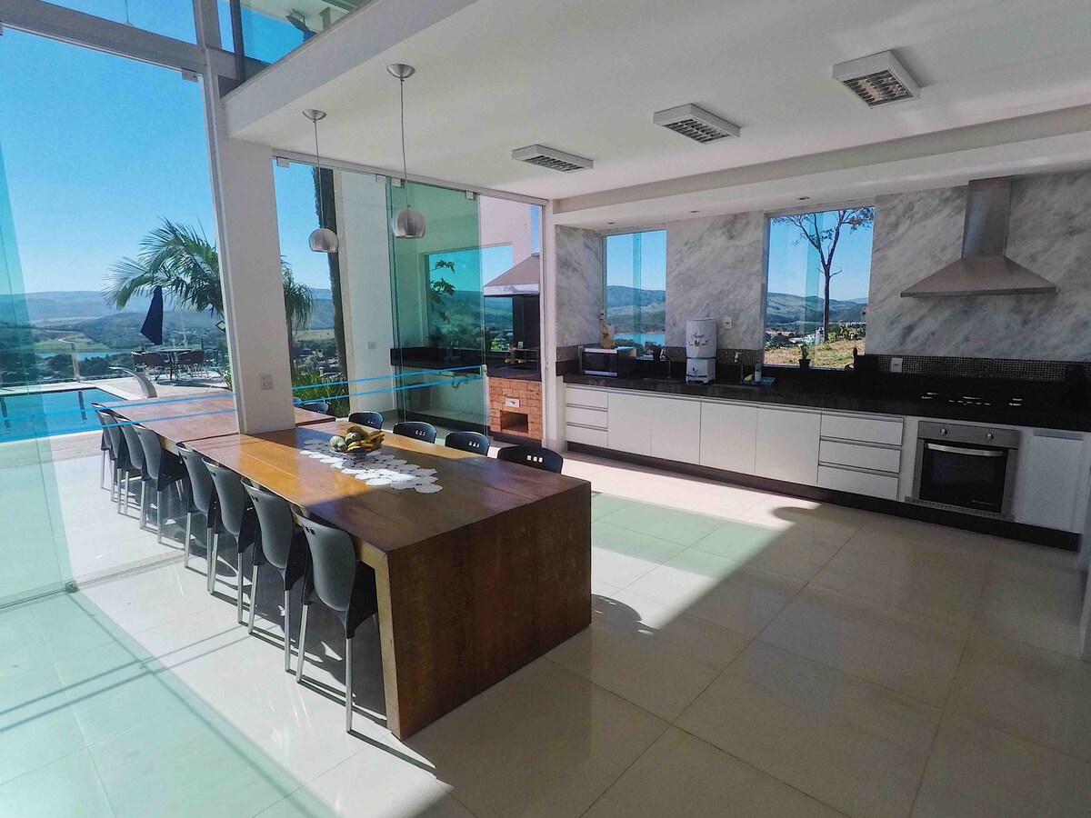 Maison élégante parfaite pour les voyages en groupe (peut accueillir jusqu'à 19 personnes) 🏡Casa Nova et bien décorée à Escarpas do Lago 📍Emplacement idéal et vue sensationnelle ❄Climatisation dans toutes les suites. 🚿7 suites (suite principale avec spa) Internet 🛜sans fil gratuit 🛁Jacuzzi chauffé (chauffage au gaz) 🏊🏻 Piscine à débordement chauffée (chauffage solaire) D'🧖♂️ un sauna 🥩Barbecue 🍽 Couverts 🍳 Pots 🥂 Bols 🖥Espace de vie - avec télévision