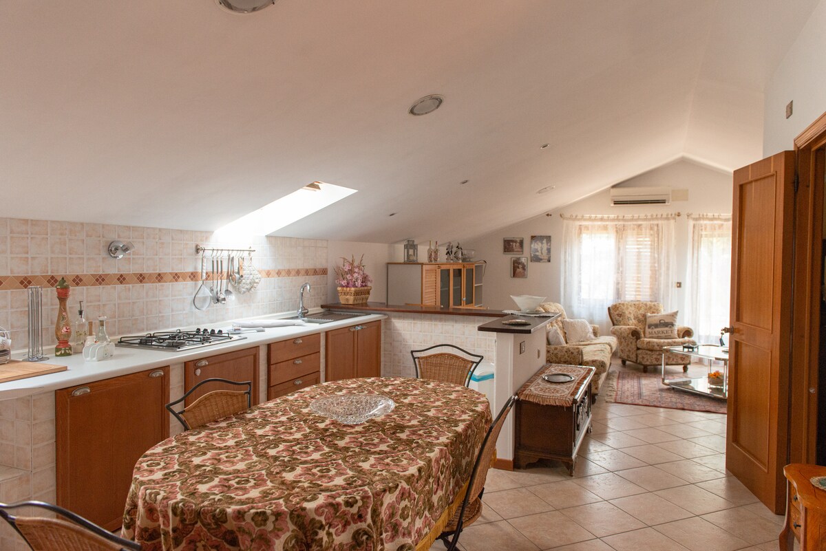 Loft spectaculaire avec terrasse de plus de 80m ² avec solarium et jacuzzi offrant une vue sur la magnifique côte Adriatique offrant le lever et le coucher de soleil le plus beau. L'emplacement est stratégique à seulement 3 km de la sortie d'autoroute et directement sur la piste cyclable qui relie trois communes. Pour rendre la maison unique sont la plage privée à deux pas, une oasis de verdure en face et la bonne intimité.