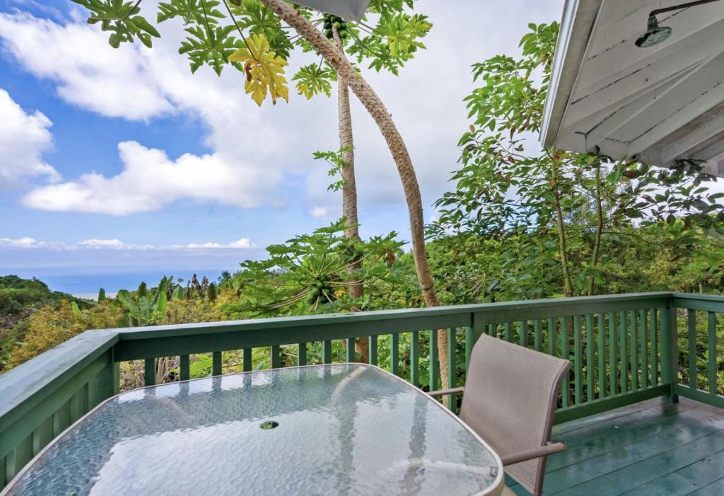 Bienvenue dans votre petit coin de paradis ! Cuisine, LR et salle de bain récemment refaites ! Le chalet de jardin est entouré sur trois côtés d'une forêt dense. Dégustez du café et des couchers de soleil sur votre porche privé surplombant notre ferme fruitière tropicale, l'océan et le ciel étoilé. Le chant des oiseaux, un chœur de grenouilles et un corbeau sauvage ne sont que quelques-uns des « sons de la jungle » qui vous entoureront. Le chalet se trouve entre deux belles baies qui accueillent certaines des meilleures activités de snorkeling des îles hawaïennes.