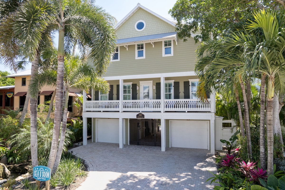 ❤Nous avons PLUS DE QUATRE-VINGTS commentaires 5★... Réservez en toute confiance❤ Maison de★ 2 étages de 2 115 pieds carrés avec 2 patios ★ Vue sur l'océan sur 2 côtés ★ 5 minutes à pied de la plage presque privée ★ Capacité d'accueil : 8 personnes (2 rois, 2 lits jumeaux, canapé convertible) - 3 salles de bain Wifi ★rapide, Keurig et téléviseurs intelligents ★ Accès à la piscine chauffée, au spa et au pickleball ★ Pack N Play + Jeux de société ★ Hôtes expérimentés - (arrivée facile, communication claire, logement propre) Vous méritez de voir des levers et couchers de soleil légendaires à Captiva au moins une fois dans votre vie!
