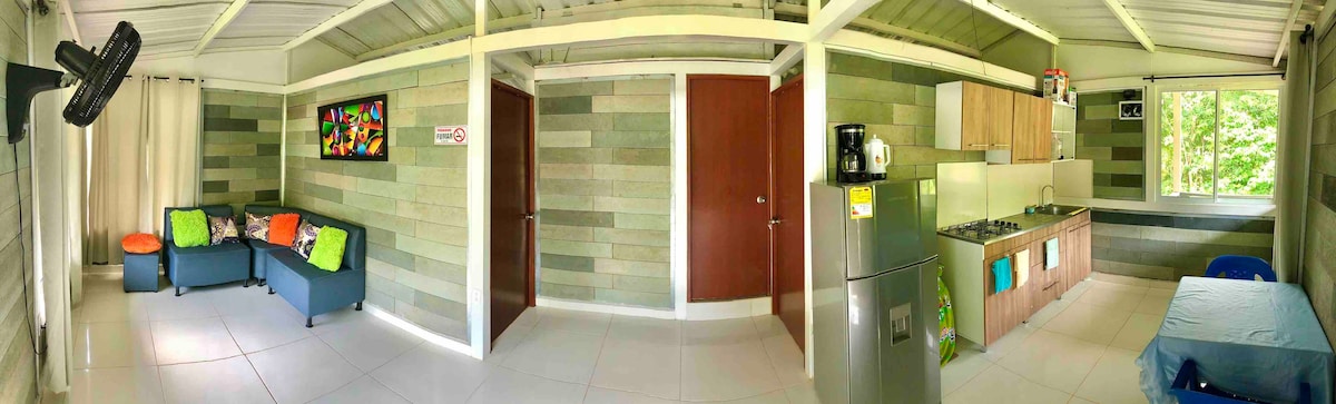 Cabane Natura Capurganá, nous avons conçu l'espace idéal pour que vous puissiez profiter de la magie de la jungle et de la mer sans sacrifier votre confort. Nos 4 chambres pour 16 personnes sont conçues pour garantir votre repos total après une journée d'aventure. ❄️ Climatisation : fraîcheur garantie. 🚿 Salle de bain privée : confort et intimité totale 📺 TV : Le divertissement à portée de main. 🌿 Emplacement : Entouré par la nature ©Cuisine équipée Réservez dès maintenant votre expérience de repos et de nature!