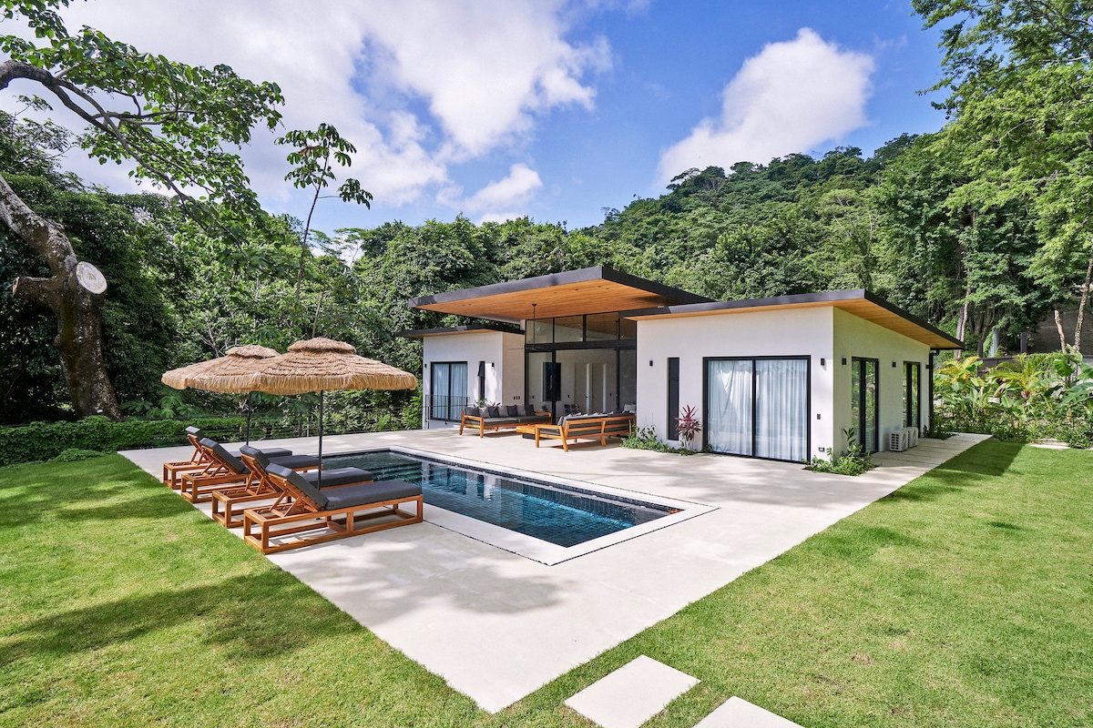 🌿 REPOSEZ VOUS EN PLEINE JUNGLE BERCÉ PAR LA NATURE ET L'OCÉAN Perchée dans la colline à seulement deux minutes de la plage, venez vous relaxer en famille ou entre amis. ✨ L'architecture Balinaise de notre villa vous offre : • 3 grandes chambres (2 lits King, 1 Queen) • 2 salles de bain modernes • Une cuisine entièrement équipée • Une piscine privée • Un salon ouvert sur la jungle luxuriante et la mer 🏄🏽♀️Cours de surf privé. 🚤Concierge VIP 🐆WELCOME TO THE JUNGLE