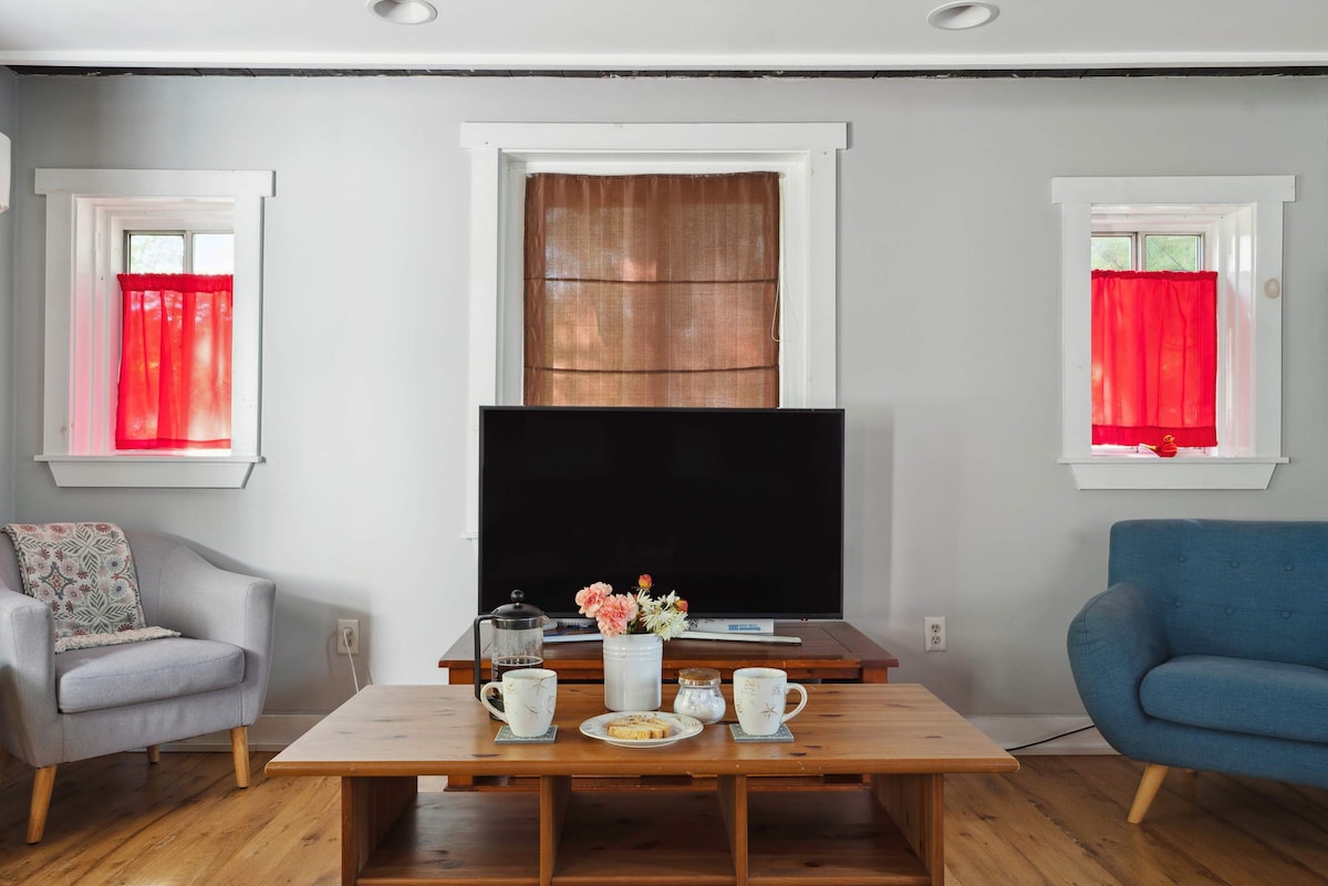 Évadez-vous dans notre appartement élégant au rez-de-chaussée dans le quartier historique de Cool Springs à Wilmington. Ce logement avec 1 chambre peut accueillir 2 voyageurs et dispose d'un très grand lit, d'un espace de travail et d'une cuisine moderne. Parfait pour les couples ou les voyageurs d'affaires qui recherchent un mélange de charme historique et de confort moderne. Situé dans un bâtiment des années 1800, vous êtes à quelques minutes du Riverfront et du centre-ville. (Une pièce d'identité et une entente signée sont requises, et un dépôt de garantie de 500 $ US peut être facturé à la discrétion de l'hôte.)