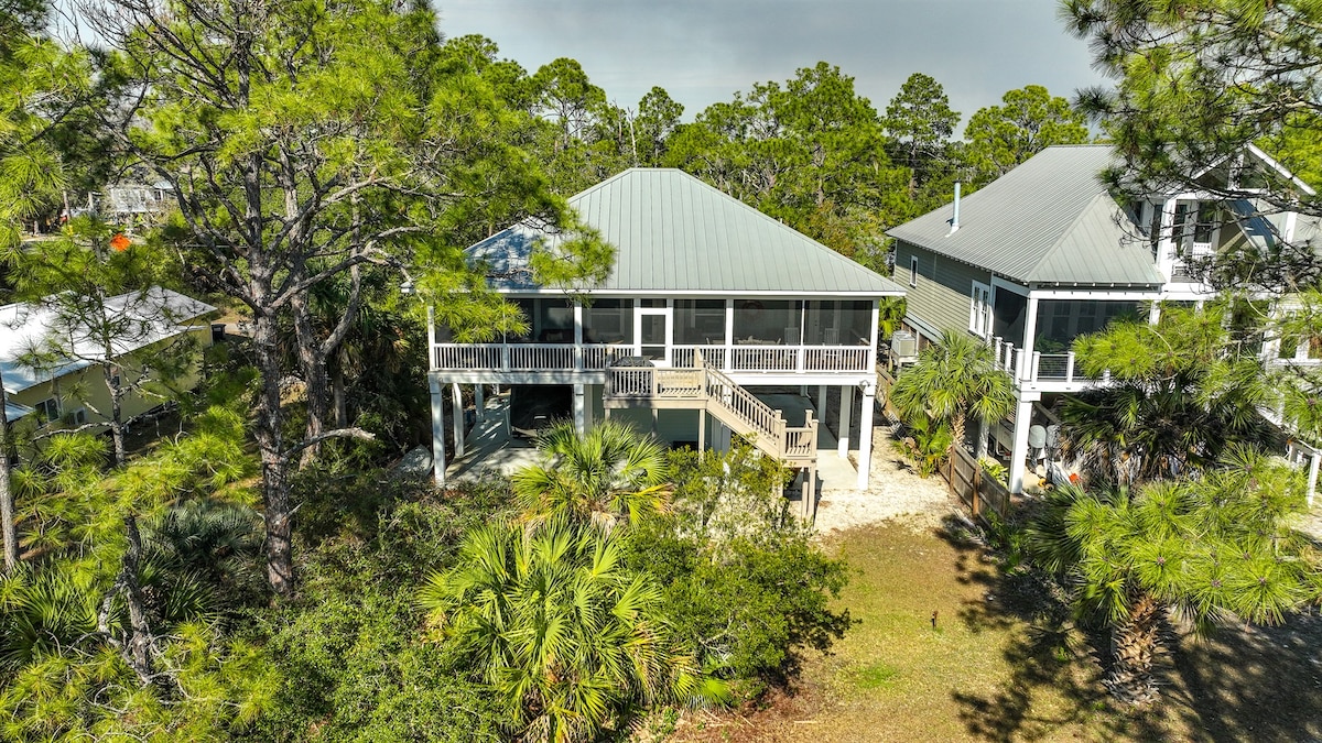 La plage de St Teresa est un petit paradis méconnu sur la Côte Oubliée. La détente et le calme vous attendent. Cette authentique maison de plage de la « vieille Floride » est divisée en 3 maisons de ville, chacune avec un grand porche privé et une plage partagée. Ce joyau caché se trouve à quelques kilomètres des villes historiques de Carrabelle et d'Apalachicola. Il y a tout ce dont vous avez besoin pour une escapade relaxante. Idéale pour les familles, les artistes, les écrivains, les amateurs de bateau/pêche, les kayakistes, les amateurs d'histoire, les photographes. Animaux bienvenus, veuillez contacter l'hôte.