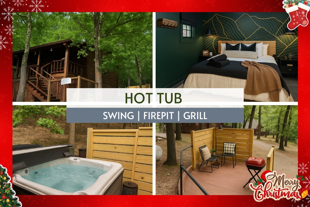 Cabane des Ozarks avec 2 lits, 2 salles de bain et vue magnifique sur la vallée * Retraite dans les bois de 18 acres à seulement 11 min du lac Beaver et à 7 min du lac Leatherwood. * Profitez d'une cuisine équipée, * Terrasse arrière privée avec jacuzzi, vue, chaises à bascule. * Jacuzzi avec fenêtre donnant sur la vallée. * Wi-Fi. * Télévision connectée 50" avec accès Netflix inclus. * Foyer électrique. * Café torréfié localement fourni. * À quelques minutes de randonnées pédestres, de pistes cyclables de montagne, de canoë-kayak, de restaurants et de boutiques. * * À 5 miles du centre-ville historique d'Eureka Springs.
