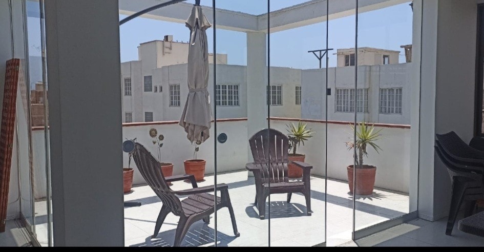 privé. le département a Terrasse privée, bien située au cœur de Huanchaco traditionnel, à 2 minutes de la plage à pied et la moitié de la petite place principale, je serai ravi de répondre à toutes vos questions. nous coordonnons l'heure d'arrivée et de départ Excellent WIFI. petit gril. 2 chambres, 2 salles de bains, eau chaude. au 4e étage. Stationnement dans la rue, gardien sur la petite place ou stationnement privé à proximité. typique VILLAGE MOCHE. seulement des gens avec de bonnes vibrations !