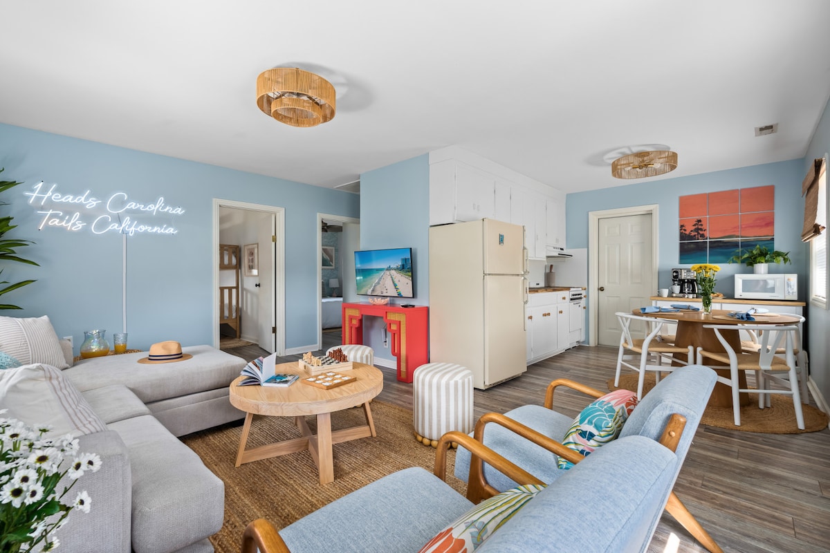 ☀️ 🌊🌴Bienvenue à California Dreaming, votre retraite de plage de rêve et familiale qui allie confort ultime, plaisir sans escale et un emplacement parfait à quelques pas du sable ! Conçue par des pros, cette maison chaleureuse et accueillante dégage une ambiance côtière confortable et amusante pour tous les âges. C'est l'endroit idéal pour les familles qui veulent se détendre, se ressourcer et s'amuser. Que ce soit une journée à la plage, un marathon des jours de pluie ou une soirée cinéma, California Dreaming a tout pour plaire. 🏖️