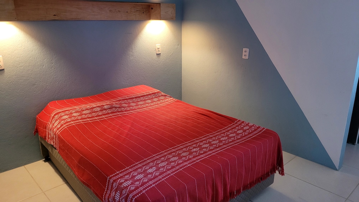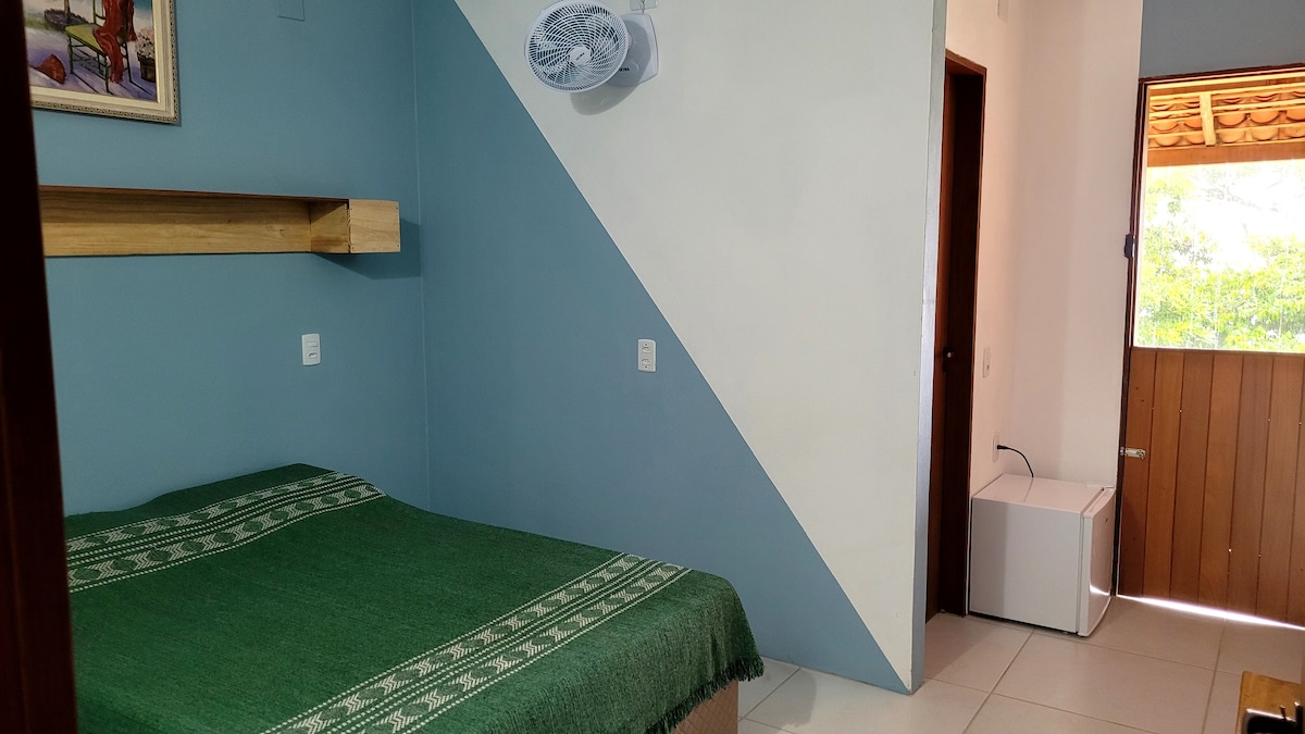 O quarto está equipado com uma smart TV, toalha, ventilador, frigobar e microondas. É um quarto privativo para até 2 hóspedes, com banheiro compartilhado, tudo novo e impecável. Sejam bem-vindos!