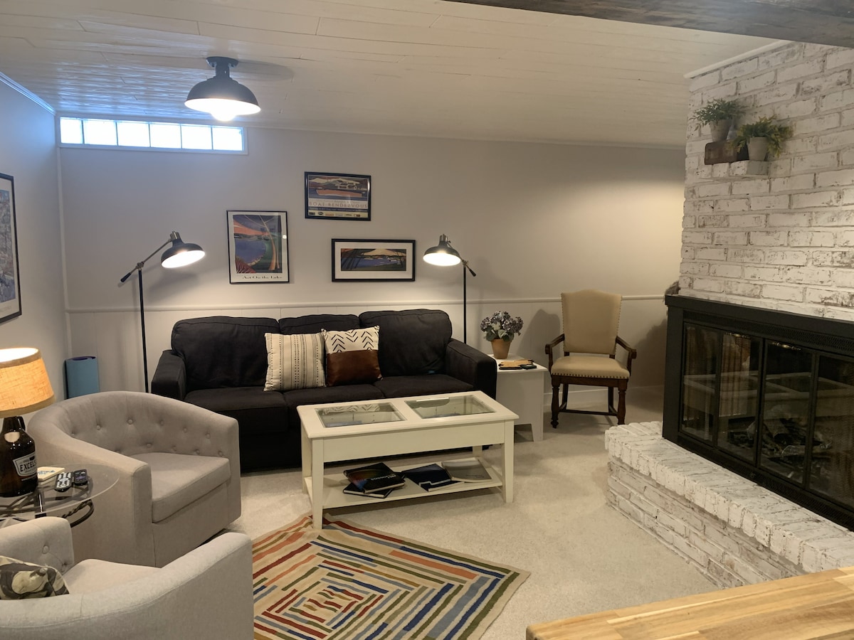 Retraite moderne et confortable de 4 chambres/3 salles de bain à Minnetonka avec un charmant porche, une grande cour clôturée, un foyer, 3 cheminées, des téléviseurs intelligents, un baby-foot et des finitions modernes. Marchez jusqu'aux parcs à proximité, à quelques minutes d'Excelsior et de Wayzata, et accédez facilement au centre-ville de Minneapolis. Quartier calme et adapté aux chiens, adapté au télétravail et parfait pour les familles ou les groupes.