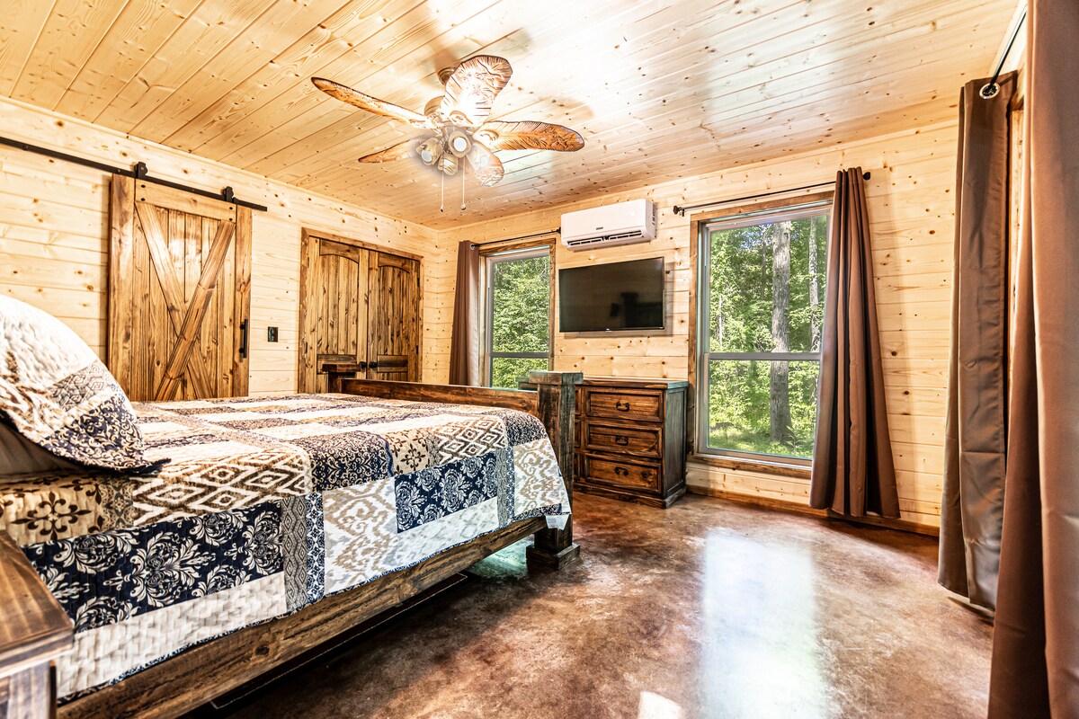Cette belle cabane se trouve sur vingt acres juste à côté de la forêt nationale d'Ozark "Pig Trial Scenic Byway". Vous et votre invité profiterez d'équipements uniques pendant votre séjour. Apportez vos VTT et vos vélos de terre pour profiter de l'exploration de la FORÊT NATIONALE D'OZARK, à laquelle vous pouvez accéder directement depuis la cabane. Il y a un lac de cinq acres sur la propriété rempli de poissons. Apportez votre matériel de pêche. Prise/remise à l'eau à la pêche. Pas de sauveteur en service.