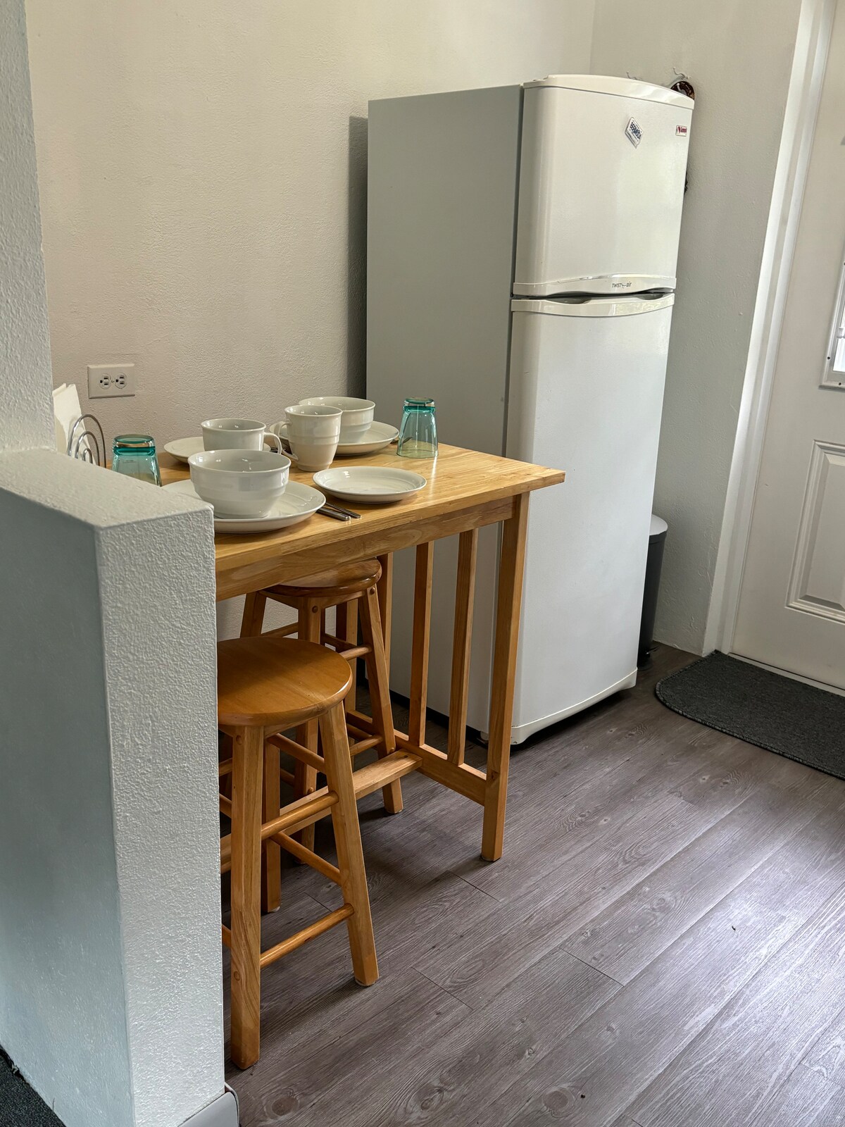Cet appartement est entièrement meublé et dispose d'un lit Queen Size + d'un lit pliant + d'un lit gonflable adapté pour une personne supplémentaire. Il est situé à 2/3 miles de l'aéroport. Il possède son propre porche privé dans un jardin. À proximité se trouvent les grottes de Crystal, le parc Blue Hole, le Swizzle Inn, l'hôtel Grotto Bay, le sentier ferroviaire/piétonnier, le glacier, un dépôt de vélos, un dépanneur à proximité et plusieurs itinéraires de bus panoramiques vers la ville de Hamilton et les plages populaires.