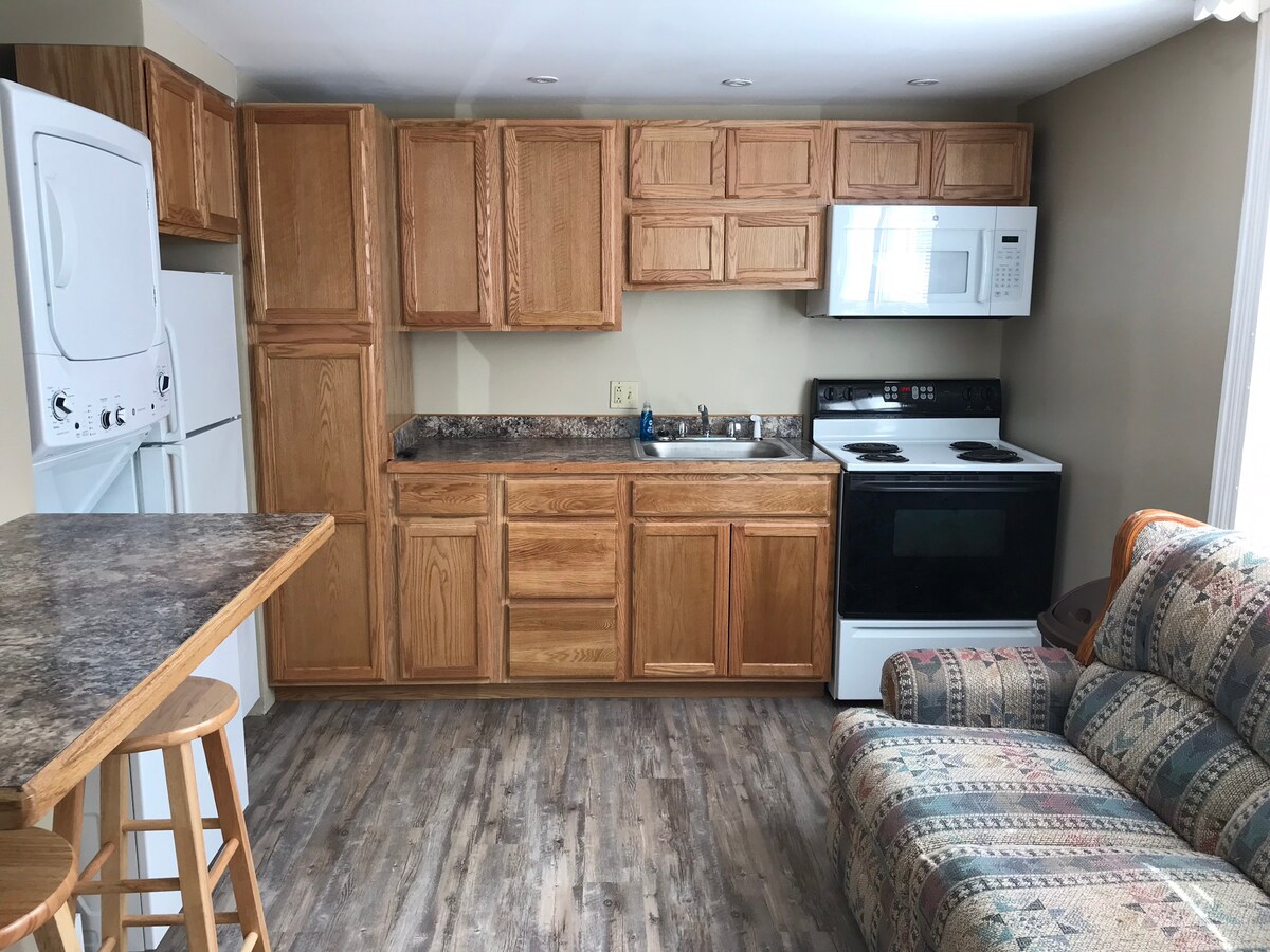 Que vous soyez en voyage d'affaires, en vacances ou pour des raisons médicales ou familiales, cet espace lumineux et aéré est conçu pour faciliter les voyages en hiver. Garage spacieux, allées déneigées et déblayées, rampe et allées. Grande salle d'entrée pour tout votre équipement d'hiver. Nouvelle salle de bain, douche à l'italienne, comptoir de petit-déjeuner avec prises USB, détecteurs de fumée et de monoxyde de carbone câblés. Accueil des voyageurs en situation de handicap. WiFi, télévision par câble. Lit de jour pour le 4e voyageur. Annulez votre réservation sans frais jusqu'à 24 heures avant l'arrivée.