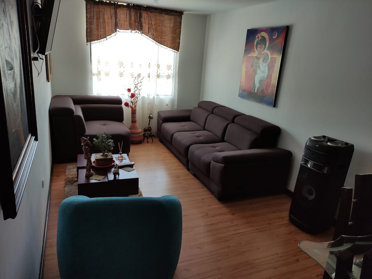 Dans ce bel appartement confortable, vous vous sentirez comme chez vous ; situé dans un condo résidentiel très calme à 5 minutes de la route panaméricaine où se trouve le CC Unicentro et à 10 minutes en voiture du centre-ville. Il a tout ce dont vous avez besoin pour un séjour confortable, il dispose de : Cuisine, salon, salle à manger, 3 chambres, buanderie 2 salles de bains avec eau chaude, TV, Wifi, et parking gratuit. La copropriété dispose d'une surveillance 24 h/24, de courts, de salons communs et de supérettes.