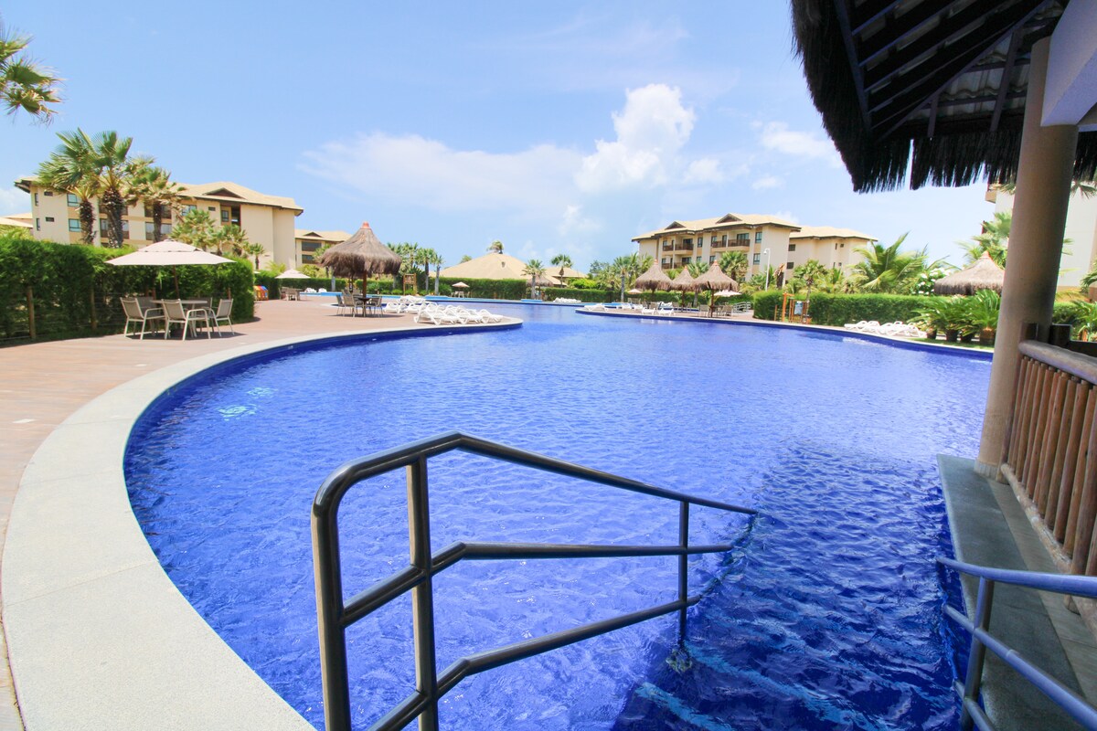 Nous vous invitons, vous et votre famille, à découvrir la nature de notre Ceará, en séjournant dans notre appartement confortable et moderne au rez-de-chaussée, préparé avec grand soin. Situé dans le paradis de Waiwai Cumbuco, l'appartement de style complexe hôtelier offre : piscine à débordement, piscine pour enfants, bar pour enfants, restaurant, salle de sport, aire de jeux, terrain de football, terrain de tennis, patinoire, tennis de plage, spa (moyennant paiement ). obs : l'électricité consommée sera facturée à la fin.