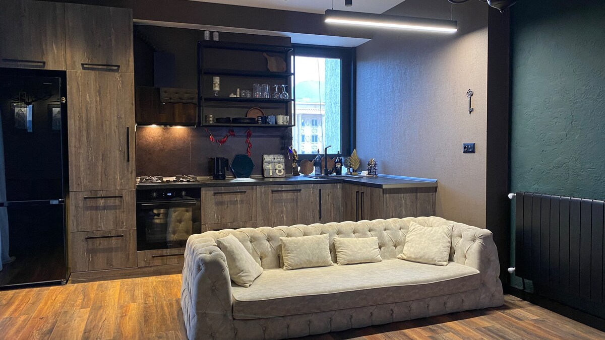Évadez-vous dans votre havre de divertissement privé à Koutaïssi! Qu'il pleuve ou qu'il fasse chaud dehors, notre appartement est le refuge idéal pour se détendre, se relaxer et s'amuser, situé à seulement dix minutes à pied du centre-ville. Entrez dans un appartement élégant et confortable conçu pour la détente et le divertissement. Le logement est votre cinéma personnel et votre salle de jeux, tout en un.