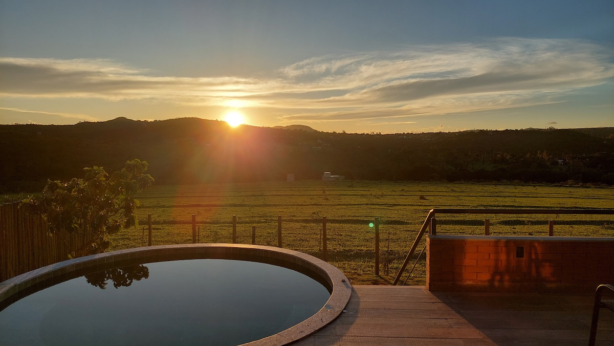 Pouvez-vous imaginer séjourner dans des bungalows au milieu de la nature époustouflante de Chapada dos Veadeiros, avec beaucoup de tranquillité et de confort? Découvrez l'accueil de voyageurs à la manière de Banglo. Nous ne sommes pas un couette et café, nous sommes un type d'hébergement différent - des bungalows exclusifs situés au cœur de Chapada. Stratégiquement positionnés, nous sommes à moins de 15 minutes en voiture des chutes d'eau les plus célèbres de la région, de la ville d'Alto Paraíso et de Vila de São Jorge, l'entrée du parc national.