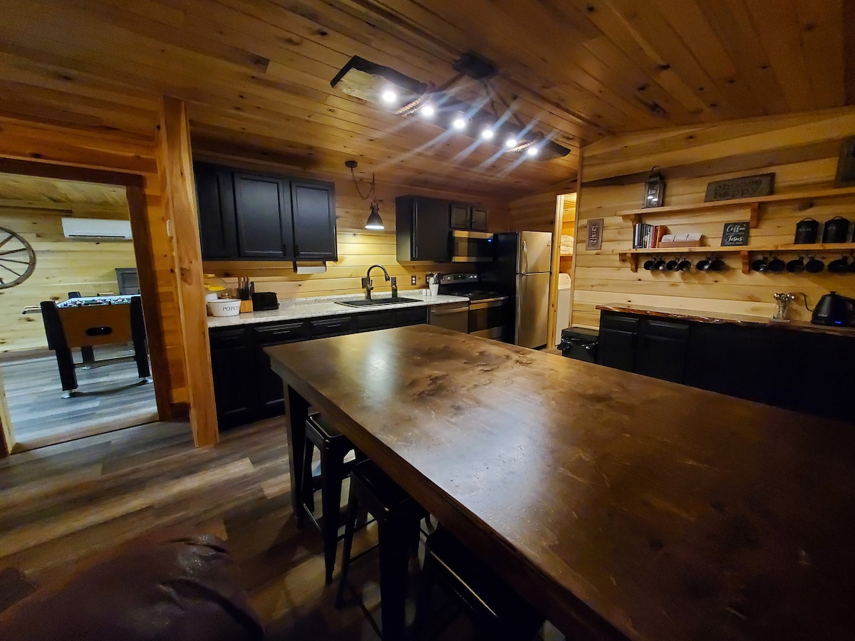 Évadez-vous dans le luxe paisible de The Retreat at Longbow ! Détendez-vous dans le jacuzzi et profitez des discussions au coin du feu et de l'observation des étoiles. Explorez les sentiers privés de la forêt nationale Daniel Boone directement depuis la cabane. Défiez vos amis au tetherball ou amusez-vous dans la salle de jeux avec baby-foot, Atari et jeux de société. Profitez du confort des matelas en mousse à mémoire de forme, de la literie de luxe et des serviettes MyPillow. Dorlotez-vous avec des pommes de douche à effet pluie et des jets pour le corps. Vivez l'escapade ultime !