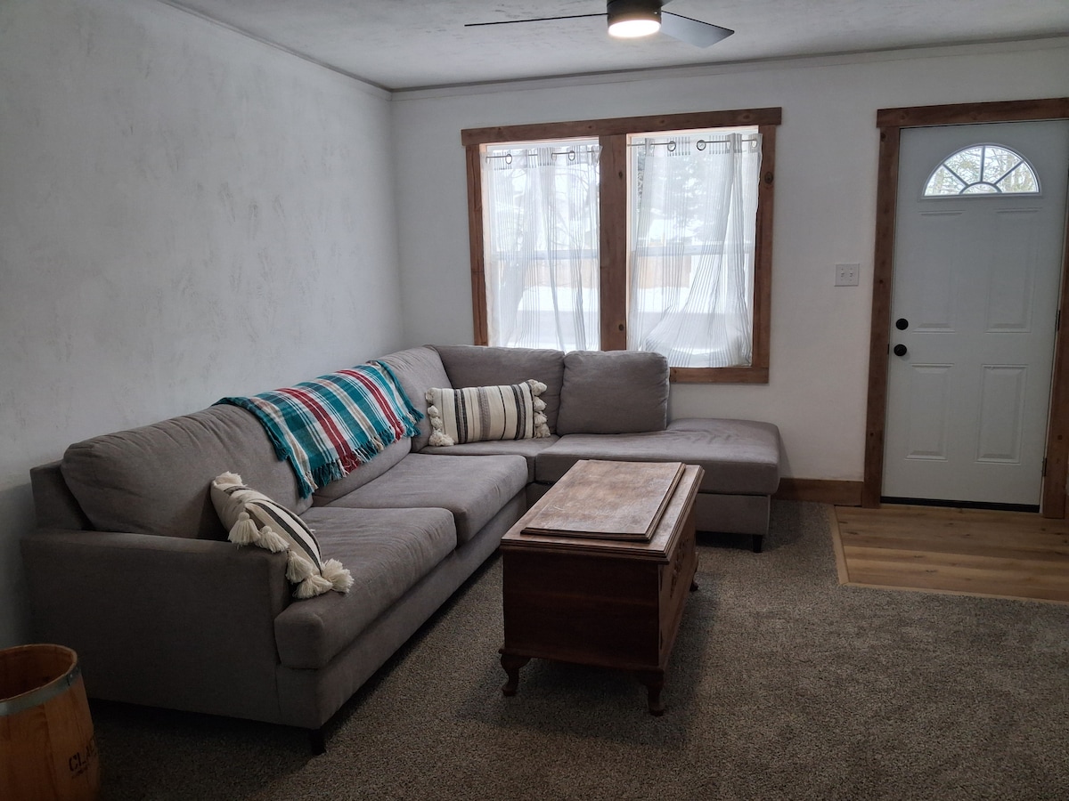 Appartement à l'étage rien que pour vous. Grande chambre avec lit king Tempur-Pedic et coin salon avec bureau ; lit gonflable queen-size et literie supplémentaire disponible. Cuisine entièrement fonctionnelle avec micro-ondes, cuisinière, réfrigérateur, cafetière Keurig, casseroles/poêles, vaisselle, verrerie et ustensiles. Salle de bains avec baignoire et douche complètes, lavabo sur pied. Salon spacieux avec télévision connectée et espace pour se détendre. À distance de marche du café, des restaurants, de certains bars, de l'épicerie. Piste cyclable à proximité.