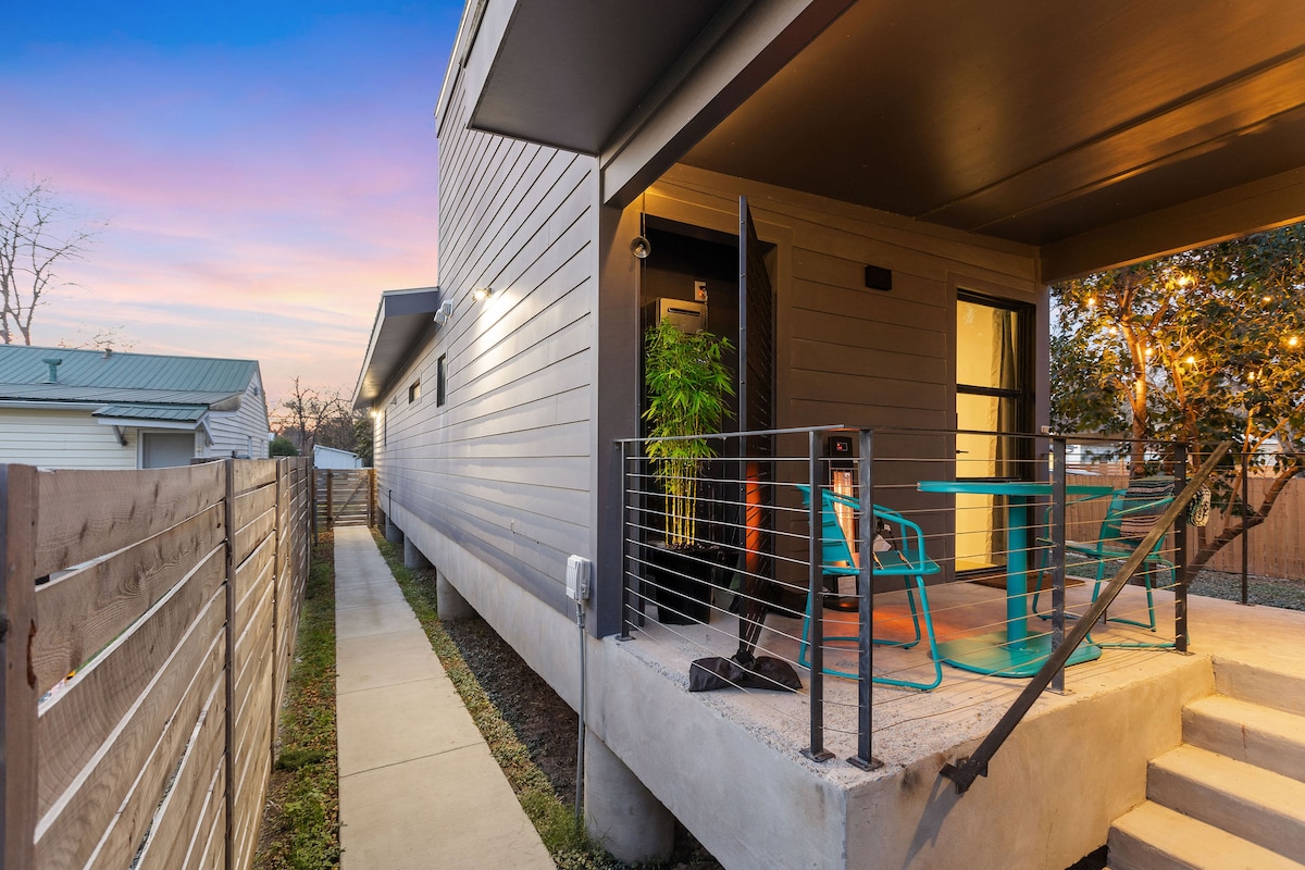Il s'agit d'une maison d'hôtes tendance, confortable et pratique pour passer un séjour amusant à East Austin. Notre casita est accessible à pied depuis de nombreux endroits les plus populaires d'Austin, y compris le Moody Center : la plus grande salle de concert d'Austin. Construite en 2020, notre maison d'hôtes dispose d'un lit Queen Size en mezzanine, d'un canapé avec un matelas double gigogne, d'une élégante douche à l'italienne, d'une télévision connectée et de petits appareils électroménagers, notamment un réfrigérateur-congélateur, un four à micro-ondes et une cafetière Nespresso. Détendez-vous avec style en explorant notre ville amusante !