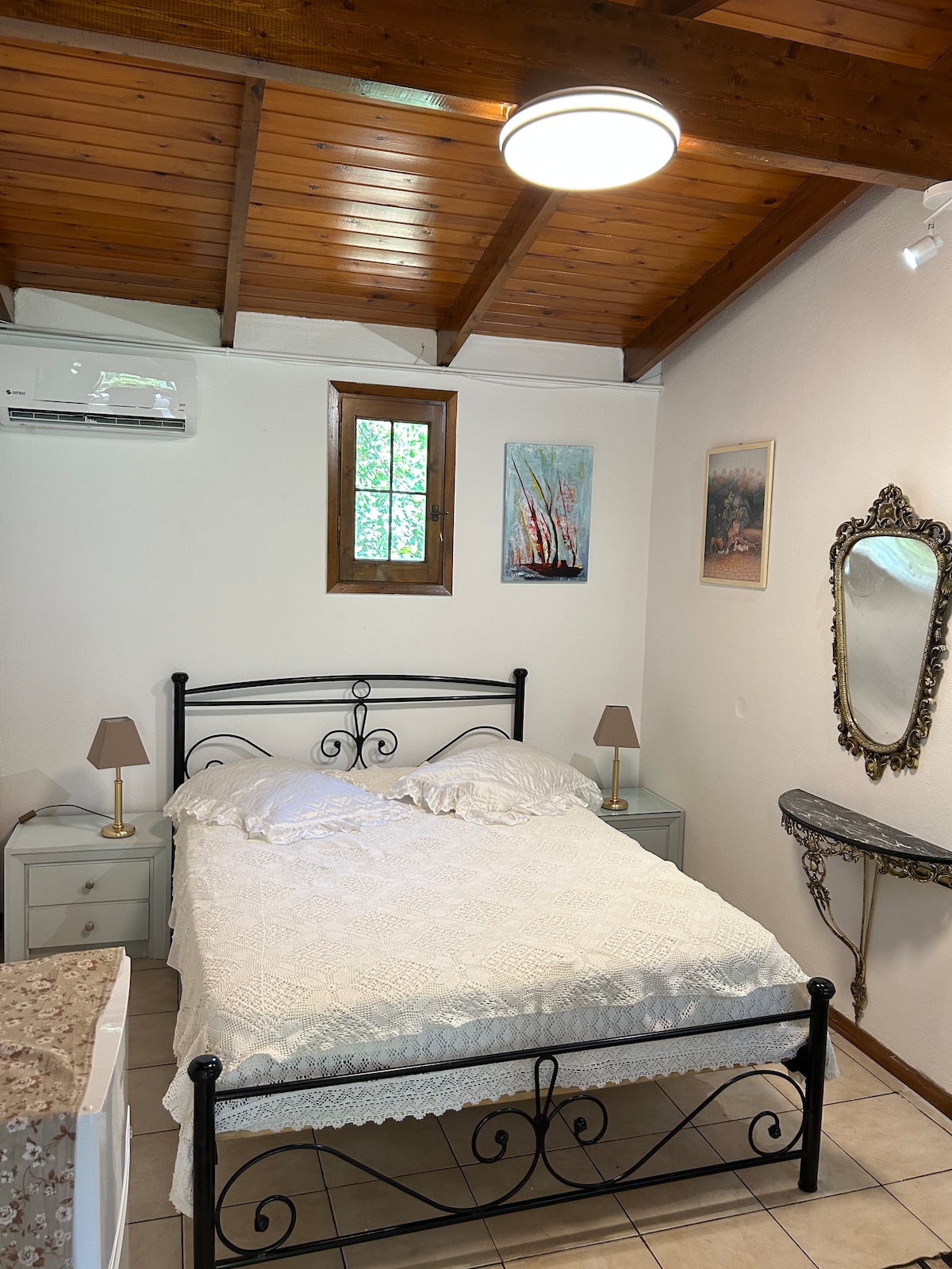 Une belle maisonnette en bois indépendante de 35 m² à 60 mètres de la mer avec un jardin adapté à la détente et aux activités des enfants. Elle est située sur la plage centrale d'Aigio. Elle dispose d'un lit double et d'un lit superposé dans des chambres séparées.