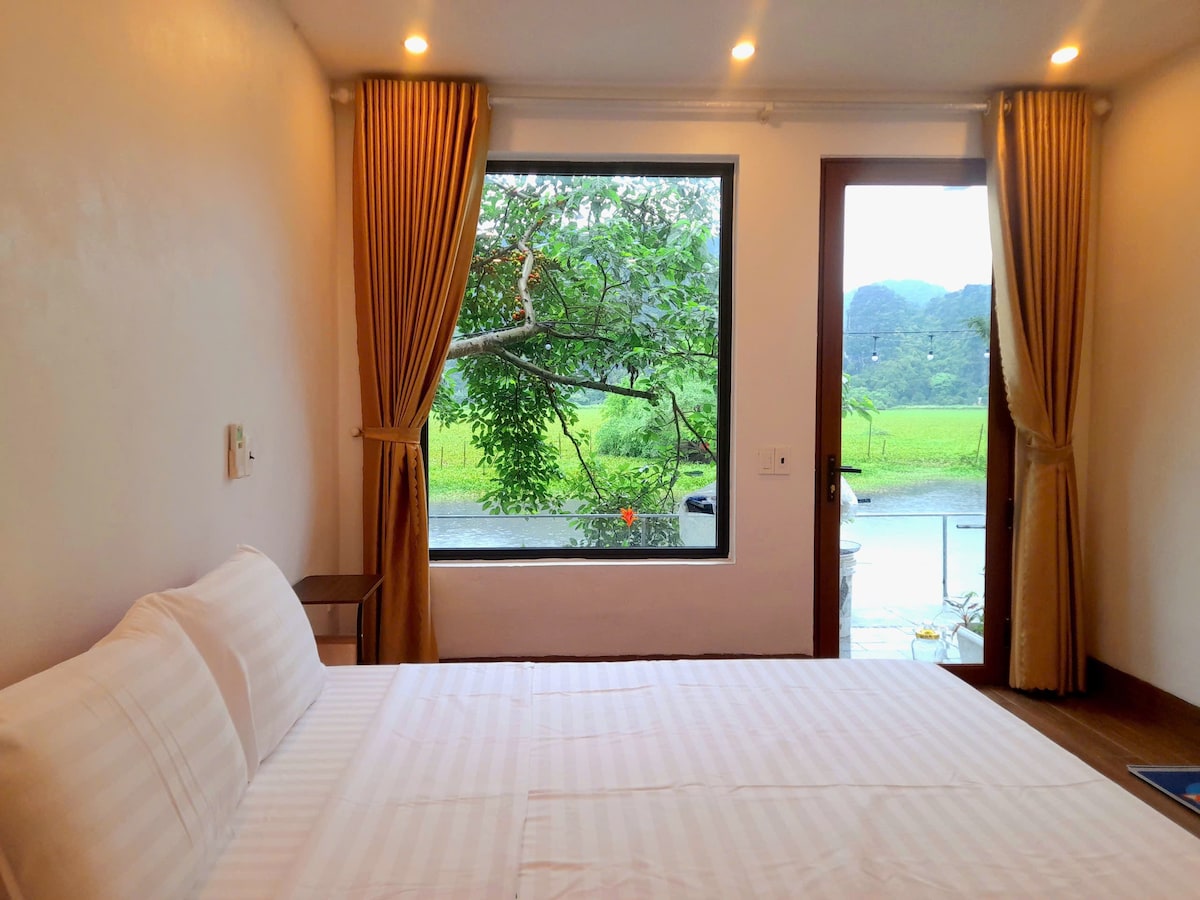 Évadez-vous dans notre charmant bungalow double à Ninh Binh Family Homestay, conçu pour le confort et la tranquillité. Cette retraite confortable offre un mélange parfait d'équipements modernes et de charme traditionnel vietnamien, ce qui en fait une escapade idéale pour les couples. Profitez de l'ambiance sereine de nos jardins luxuriants et plongez dans la piscine. Découvrez l'hospitalité chaleureuse de notre famille et explorez les attractions à proximité comme Bai Dinh, Trang An, Hang Mua, Tam Coc, Hoa Lu Ancient Capital et le parc Cuc Phuong.