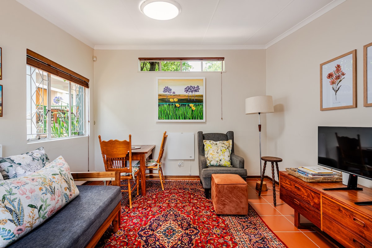 L'Olive Grove est un logement extraordinairement grand, de plus de 100 m². Nous disposons d'une énergie solaire complète pour faire face au problème d'électricité en Afrique du Sud. Réveillez-vous dans une chambre loft avec des plafonds voûtés et dirigez-vous vers une cuisine lumineuse pour préparer une tasse de café à déguster sur le patio ensoleillé mais ombragé. Un mobilier de bon goût, beaucoup de lumière naturelle et un décor de charme se réunissent pour créer une ambiance chaleureuse dans cette maison. Le jardin regorge d'oiseaux et le calme et la tranquillité qui y règnent sont autant de nourriture pour l'âme.