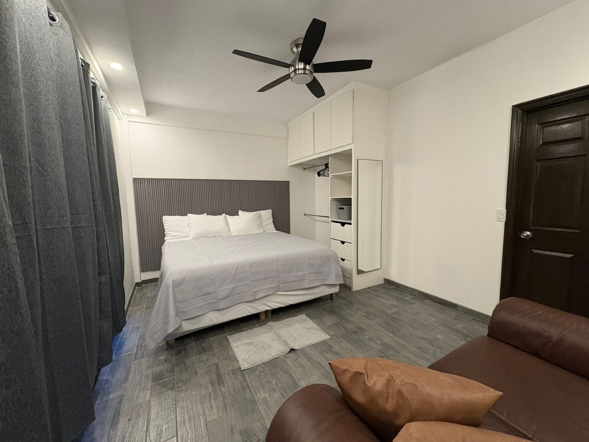✨❄️ Spécial hiver ❄️✨ Cette saison, profitez de tarifs hivernaux spéciaux dans notre studio lumineux et élégant, idéalement situé à Kino, Tijuana 🏡 🌟 Ce que vous allez adorer : ✅ Climatisation et Wi-Fi haute vitesse ✅ Téléviseur intelligent pour vos émissions préférées 📺 ✅ Cuisine entièrement équipée 🍳 ✅ Salle de bain privée ✅ Zone calme et sûre ✅ Stationnement facile 🚗 ✅ À seulement 2 minutes du stade Chevron ❄️ Tarifs spéciaux d'hiver : • En semaine à partir de 900 MXN • Week-ends à partir de 1 100 MXN