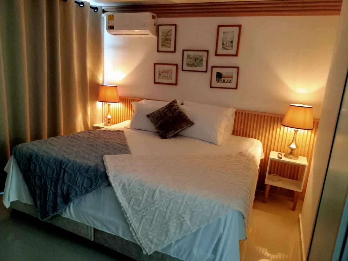 Détendez-vous dans cet espace calme et élégant près du centre commercial Mayales, composé d'une salle meublée avec centre de divertissement, d'une télévision grand écran, du wifi et d'un balcon donnant sur les montagnes. Aire de repas pantry. Cuisine équipée d'ustensiles, frigo et mixeur. Zone de travail avec lave-linge. Chambre principale avec lit double, télévision, placard, salle de bain intérieure, climatisation. 2 chambres secondaires, chacune avec lit double, climatisation et salle de bain partagée dans le couloir.