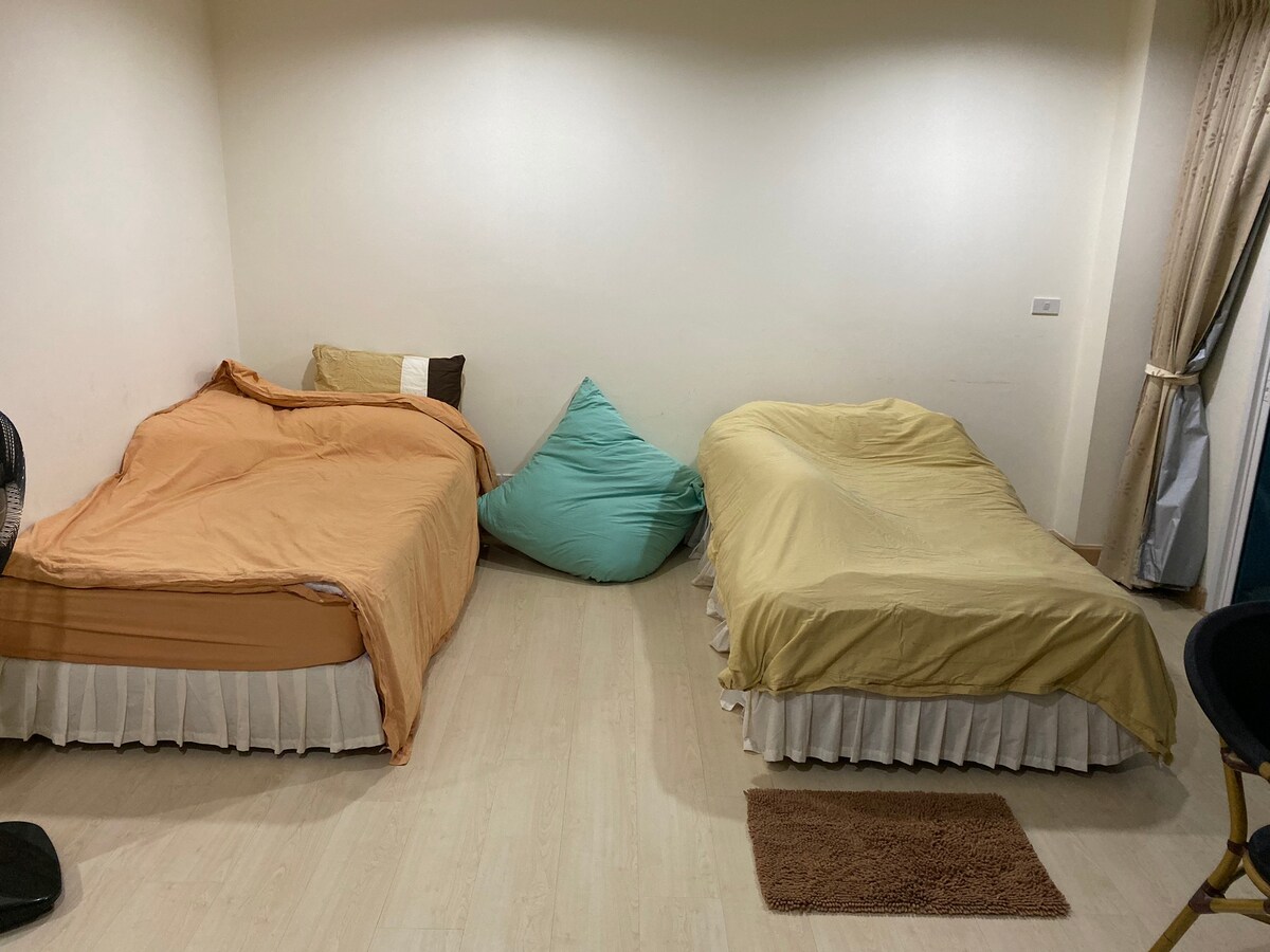 - Chambre spacieuse jusqu'à 33 m ² - L'entrée est à côté de la plage de Bangsaen, en face de la porte de l'hôpital. Burapha peut se garer dans l'appartement et prendre un Song Taew. Il est très pratique de se rendre n'importe où. - Il y a un café 7-Eleven et un café Amazon du même côté de l'appartement à distance de marche. - Près du plus grand centre commercial de Bangsaen et du marché de Wangmook - Il y a un parking à la fois la zone intérieure et le grand patio extérieur. - Lit de marque Dunloppilo récemment installé - Climatiseur vient d'être réinstallé, onduleur calme et frais
