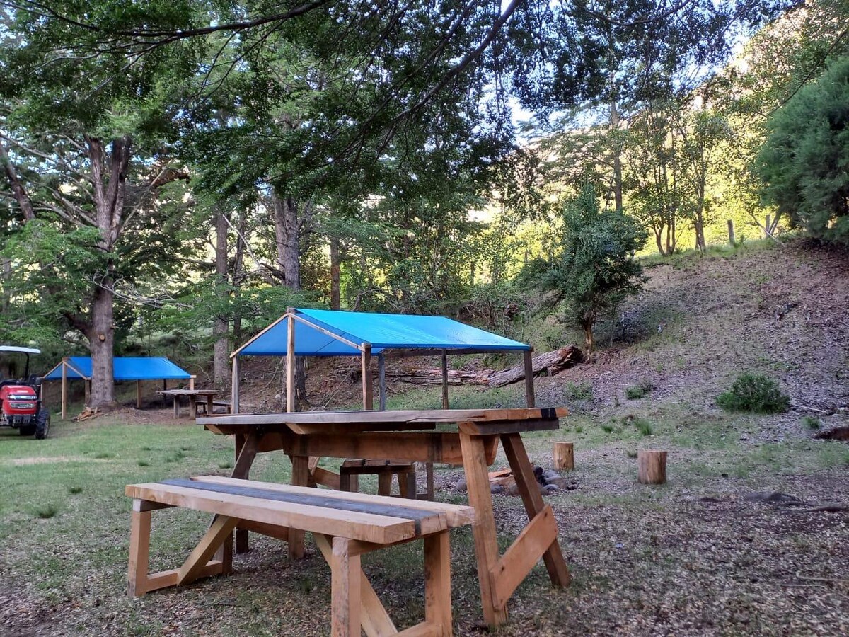 Profitez d'un séjour inoubliable dans un endroit privilégié, à quelques pas de la magnifique rivière Azul, dans un espace privé idéal pour se connecter à la nature et se ressourcer. Nous disposons de tout le confort nécessaire pour un repos réparateur, y compris l'électricité, la télévision par satellite et un environnement calme entouré par la nature de la Patagonie. Il dispose également d'un barbecue entièrement équipé. Un refuge accueillant pour ceux qui cherchent à se reposer, à profiter et à se reconnecter à l'essentiel.