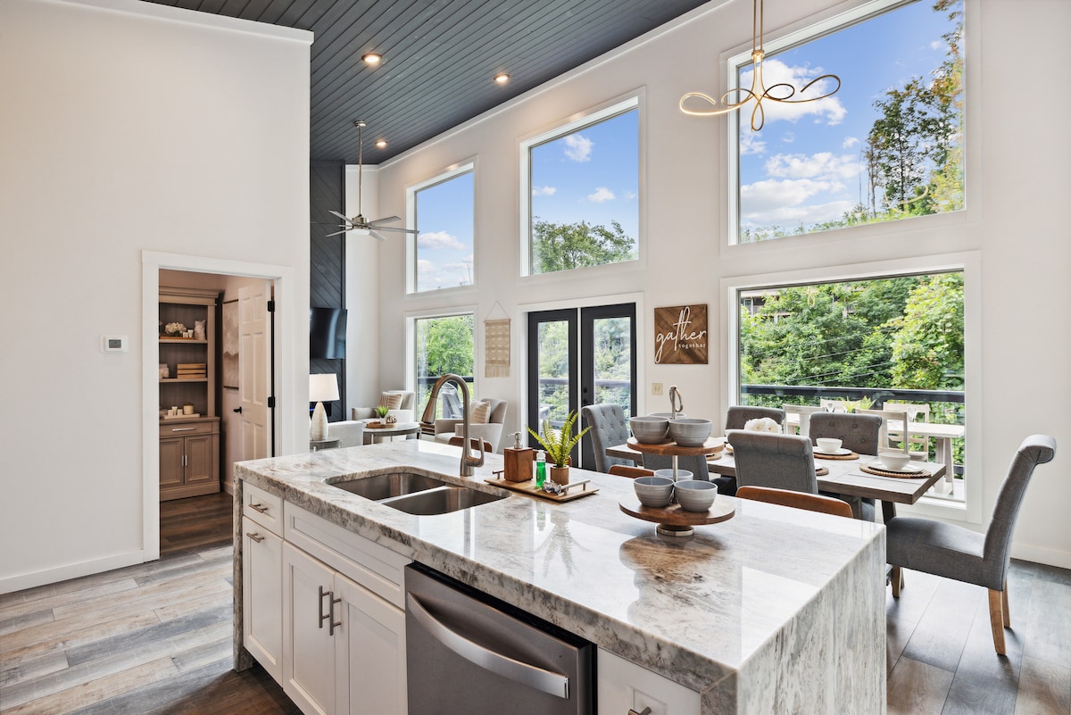 Découvrez un luxe inégalé au Windows to the Mountains, une merveille moderne nichée à Gatlinburg avec une vue imprenable sur le mont. Leconte. Le chalet dispose d'une terrasse sur le toit avec une piscine modulaire, une salle de cinéma et des équipements extérieurs exquis. Profitez d'une cuisine entièrement équipée, d'un salon confortable avec une cheminée à vapeur et d'une suite parentale avec une salle de bain de type spa. Avec son bar à café, ses tables de jeux et son sauna, Windows to the Mountains offre une retraite exclusive aux voyageurs exigeants qui recherchent une escapade somptueuse.