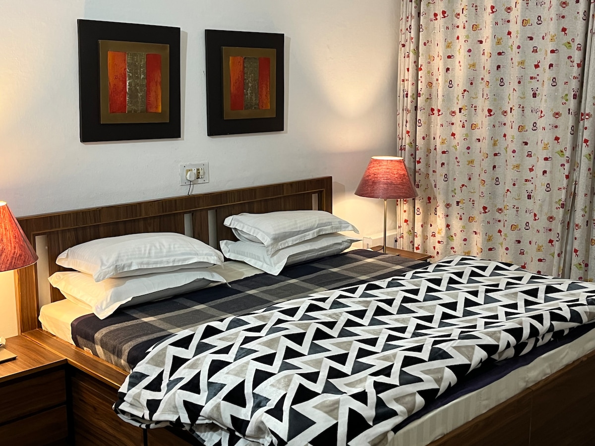 Welcome to our spacious and peaceful 2BR villa floor, just 10 minutes from the railway station and 20 minutes from the airport. With a private entrance, air-conditioned rooms, and two modern bathrooms, our villa offers a comfortable stay. Enjoy the large terrace, perfect for morning coffee or evening drinks. The villa includes a well-equipped kitchen with RO-filtered water and heater facilities for winter. After each checkout, we ensure meticulous cleaning and sanitization for your safety