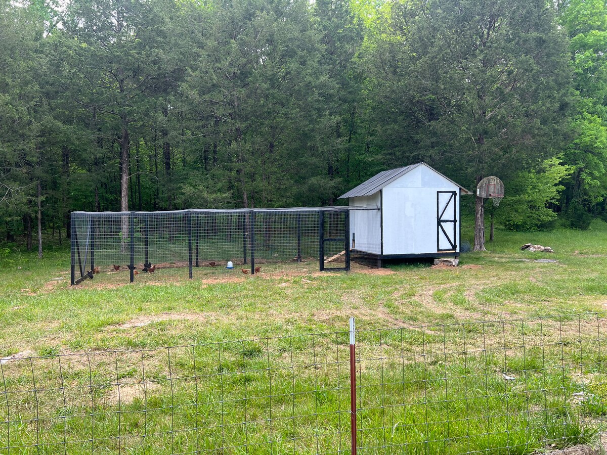 Venez profiter de la beauté et de la simplicité de notre mode de vie à la ferme à la campagne. Kingdom Acres se trouve près de Murfreesboro, Shelbyville, Lynchburg et 40 Miles en dehors de Nashville. Ce petit havre de paix est niché entre les chênes et se trouve sur les rives de notre étang. Le wifi est très faible dans la cabane, cependant, vous pouvez accéder au wifi sur le porche attaché à la maison principale. Déconnectez-vous de l'agitation de la vie urbaine dans ce charmeur de campagne et prenez le temps de vous détendre dans notre jacuzzi ou de rafraîchir l'âme au coin du feu !
