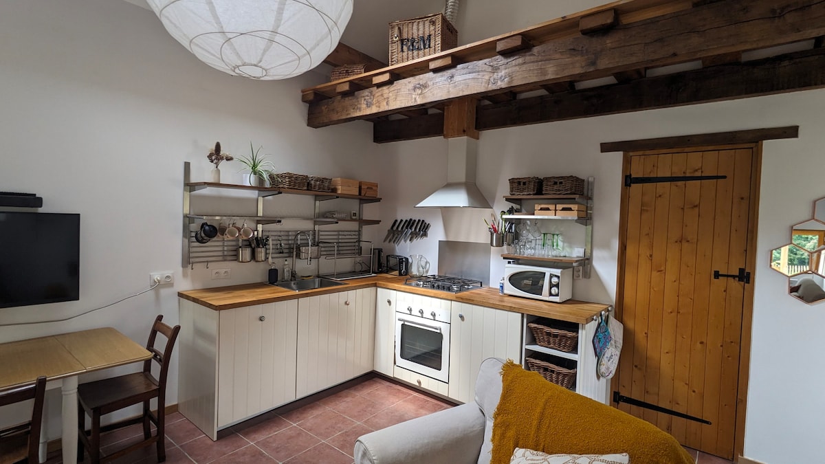 Détendez-vous dans ce refuge confortable et tranquille. Autrefois banque du village, elle a été transformée avec amour en un chalet intime et excentrique d'où vous pourrez explorer la belle campagne française, immortalisée par les célèbres artistes français Pissaro et Piet. À proximité de la petite, mais animée ville commerçante de Lassay-les-Châteaux, une visite au château du 14e siècle et aux boulangeries locales est essentielle. Avec le Musée du Cidre à votre porte, il y a beaucoup à voir et à faire.