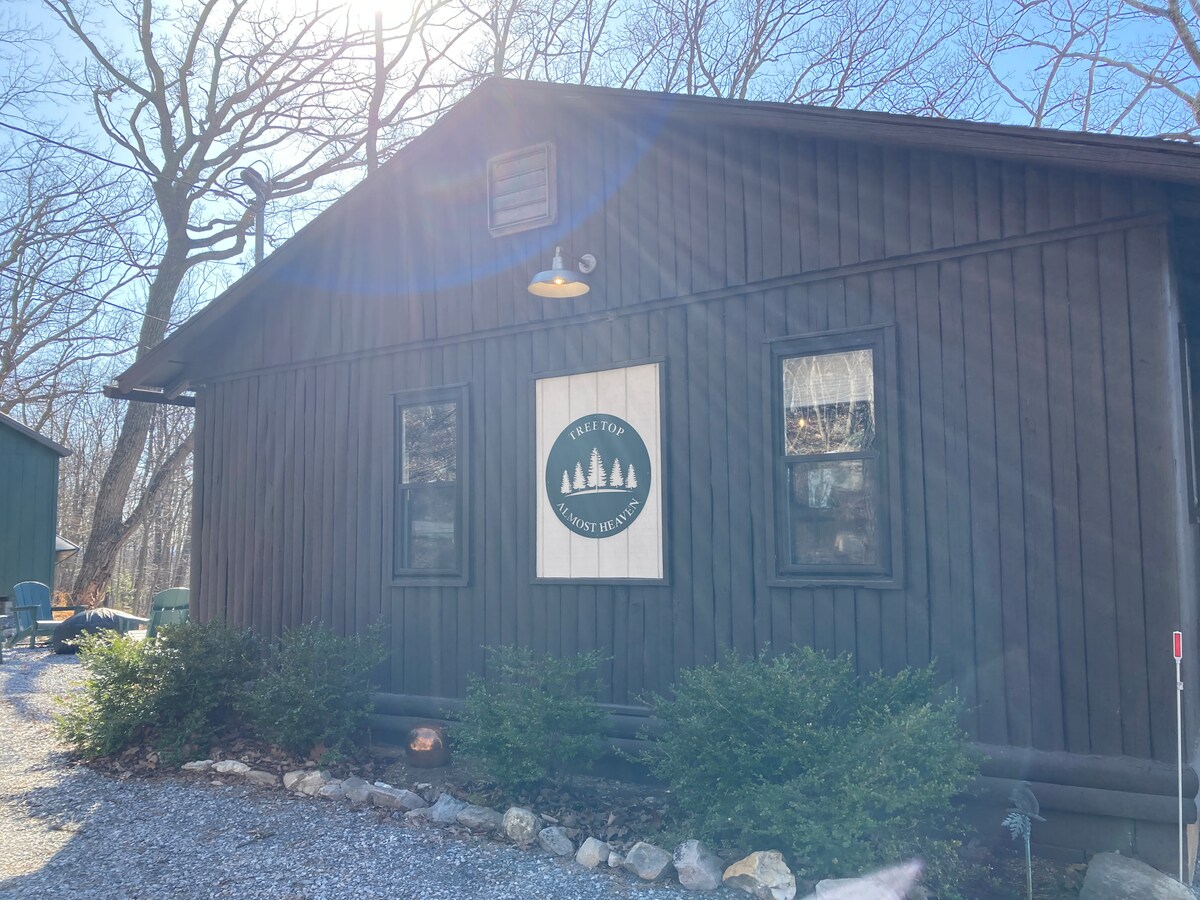 Escapade spacieuse unique pour un couple, une petite famille ou un voyageur solo. Grande pièce de 30 pieds, mur de fenêtres donnant sur une grande terrasse, planchers de chêne, NOUVEAU JACUZZI dans un cadre privé. Chambre King avec salle de bain attenante ; le loft dispose d'un lit double. Moderne avec des touches de mcm et vintage, ce qui crée une retraite magique pour vous dans la cime des arbres. Sur 2 acres. Randonnée jusqu'au sommet de la montagne Cacapon depuis la porte arrière. À quelques minutes en voiture (3 min) de la piscine/du jacuzzi/de la pataugeoire communautaires privés (en été seulement). À 10 minutes de Berkeley Springs avec ses bains romains, ses arts, etc.