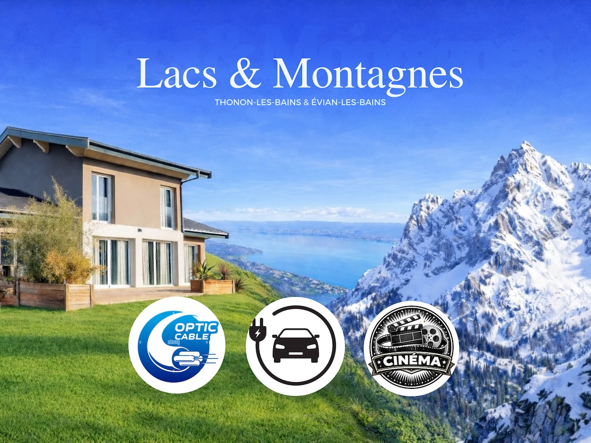 Maison de 200m2 surplombant le port d'Evian et le Lac Léman. Elle bénéficie d'une vue panoramique sur le lac et sur une partie des massifs montagneux des Alpes. Le Belvédère d’Evian est exposé de telle manière à pouvoir bénéficier des rayons du Soleil toute la journée. En période de beau temps, le levé et couché du soleil peuvent être contemplés depuis le balcon. Sa situation géographique à proximité du centre-ville et des bords du Lac en font le lieux idéal pour se ressourcer, au calme.