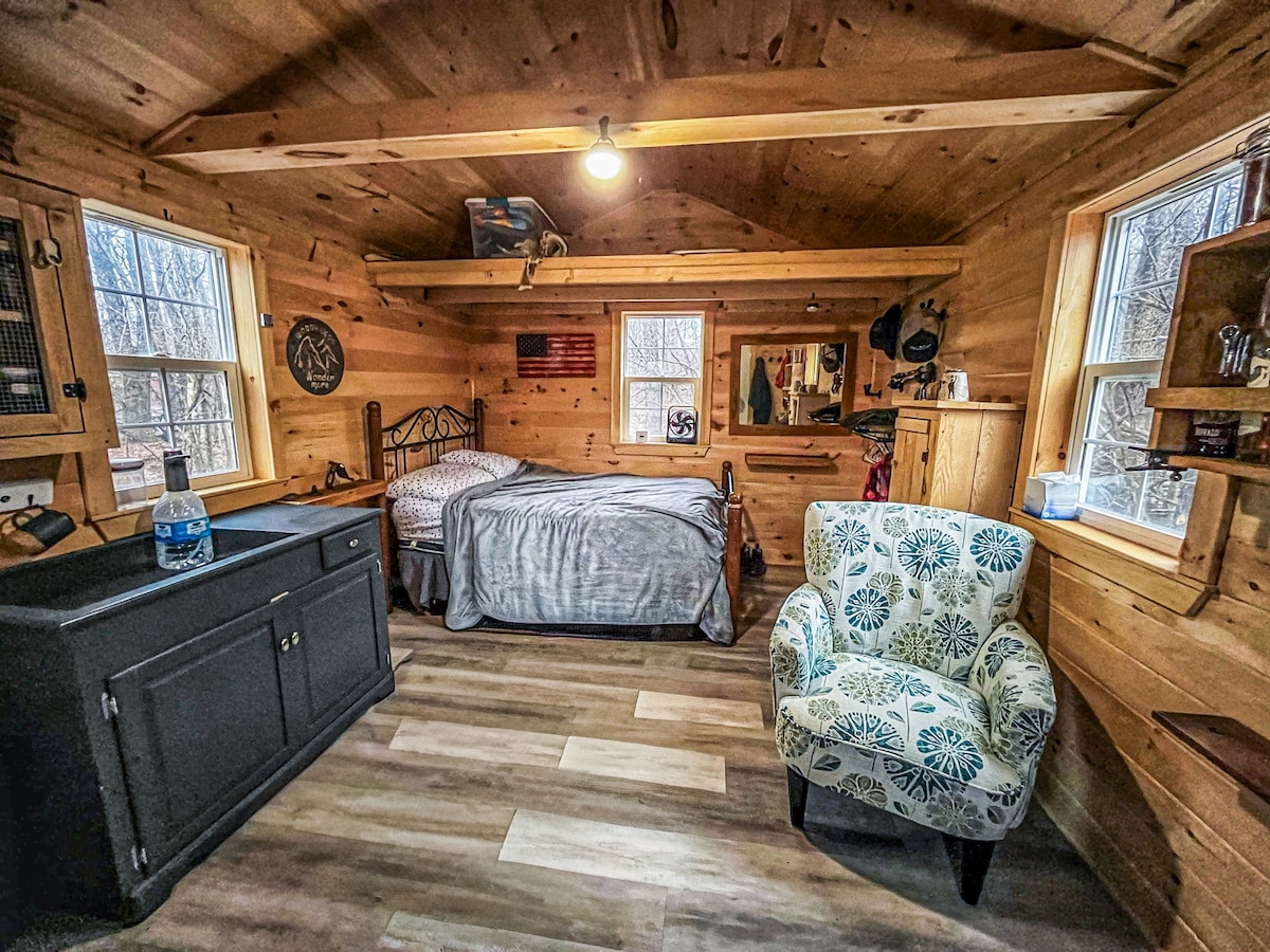 Close to lily dale ! Cannabis friendly Communal stay. Read whole listing b4 booking.nature is one of the greatest healers.rustic but can plug your own generator into cabin to power it. hot tub is shared and at hosts home. 1room tiny off the grid cabin ( heat provided labor day to memorial day) . Nice guest shower/ available at hosts home. hot breakfast in bed add on. This is our most private cabin . Own driveway. Get away from the busy world dogs welcome! flush toilet at hosts home