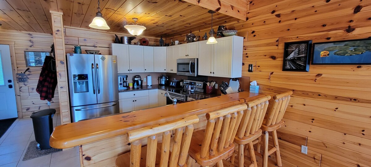 Cette belle maison en rondins est au cœur de tout ce que le nord du Michigan a à offrir. La maison dispose de 3 chambres pouvant accueillir 7 personnes. La chambre principale dispose d'un lit king size, salle de bain privée et une promenade dans le placard. La grande salle dispose d'une belle cheminée en pierre. La cuisine entièrement équipée permet de profiter facilement des repas familiaux autour de la grande table de la salle à manger avec des sièges supplémentaires sur l'île. Cadre isolé et privé à moins de dix minutes en voiture de la ville de Mackinaw et des ferries pour l'île Mackinac !