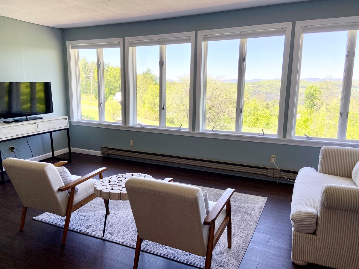 Appartement d'une chambre et d'une salle de bain attenant à une ferme historique. Cet espace confortable est l'endroit idéal pour une escapade de fin de semaine ou de longues vacances en famille dans une ferme historique du Vermont. Équipé de tout le linge de maison et de la vaisselle dont vous aurez besoin. Proche de l'autoroute I-89 et à 30 minutes des stations de ski comme Saskadena Six. Propriété de 155 acres avec des sentiers, des collines de luge et nos animaux de ferme que vous pouvez apprécier. Consultez nos avis, vous ne serez pas déçu!