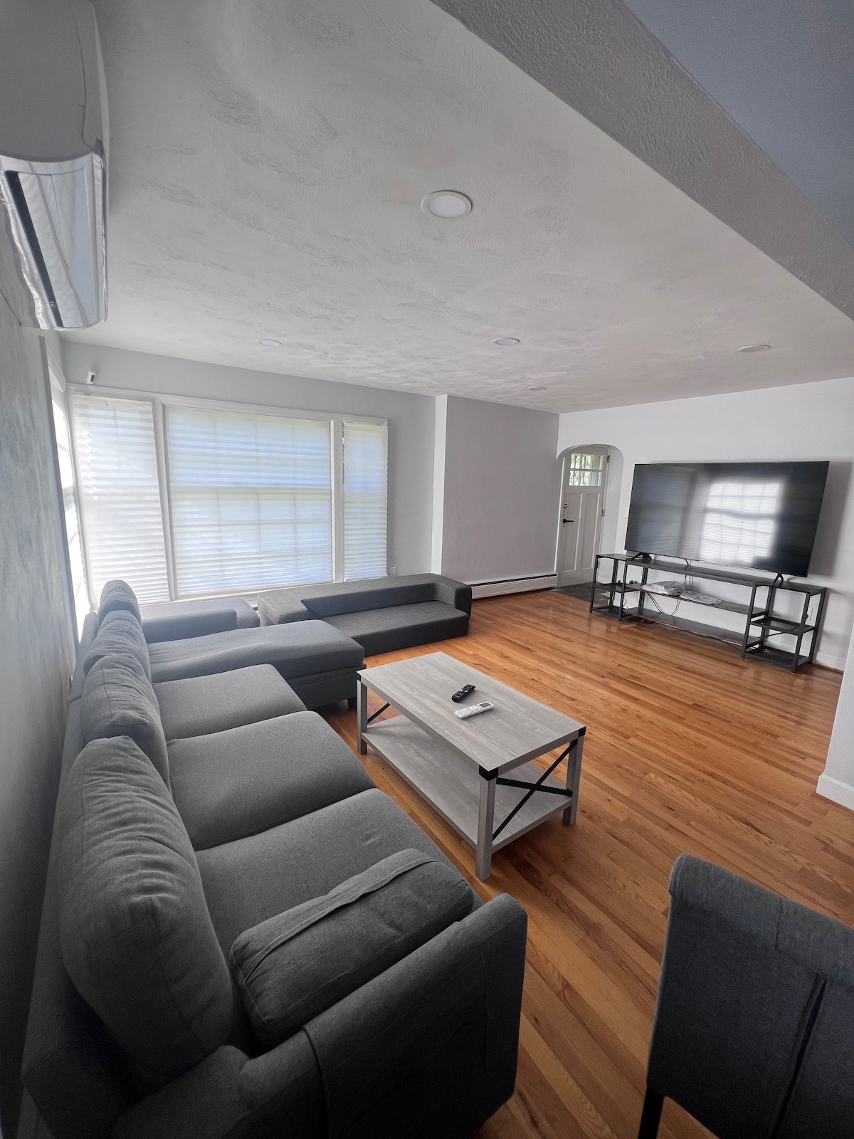 Appartement rénové de 1 chambre au premier étage dans un quartier calme Cet appartement magnifiquement décoré dispose d'une grande cour et se trouve à quelques pas de la digue de la rivière, parfait pour des promenades paisibles. Détails et commodités : • Téléviseur intelligent Roku de 50 po, WiFi 400 Mbps, climatisation • Cuisine entièrement meublée avec lave-vaisselle et micro-ondes • Laveuse et sécheuse. • Draps fournis • Stationnement en dehors de la rue • Livre d'or avec des recommandations locales Je suis juste à un coup de fil si vous avez des questions et je suis toujours heureux de vous aider!
