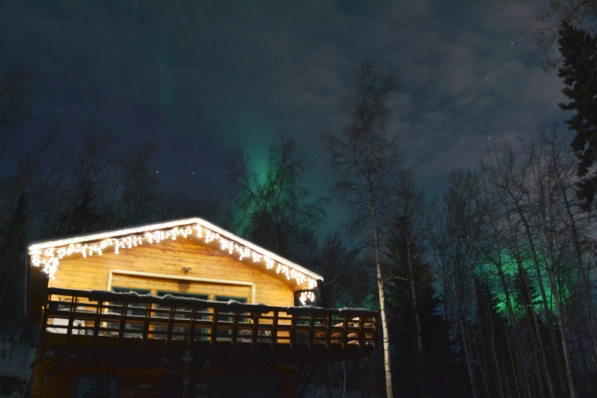 Profitez d'un chalet confortable avec tout le confort moderne dans un emplacement imbattable en ville et à quelques minutes de Creamers Field pour l'observation des aurores boréales. À quelques minutes à pied des championnats du monde d'art de la glace en milieu d'hiver. Proche de l'aéroport, des cafés, des magasins et du centre-ville tout en étant à l'écart de l'agitation. Blottissez-vous à côté du feu à l'extérieur ou profitez de Netflix et Amazon Prime TV à l'intérieur. Nous vous avons fourni tous les produits de base pour cuisiner un repas incroyable dans la cuisine ou à l'extérieur au-dessus d'un feu ouvert.
