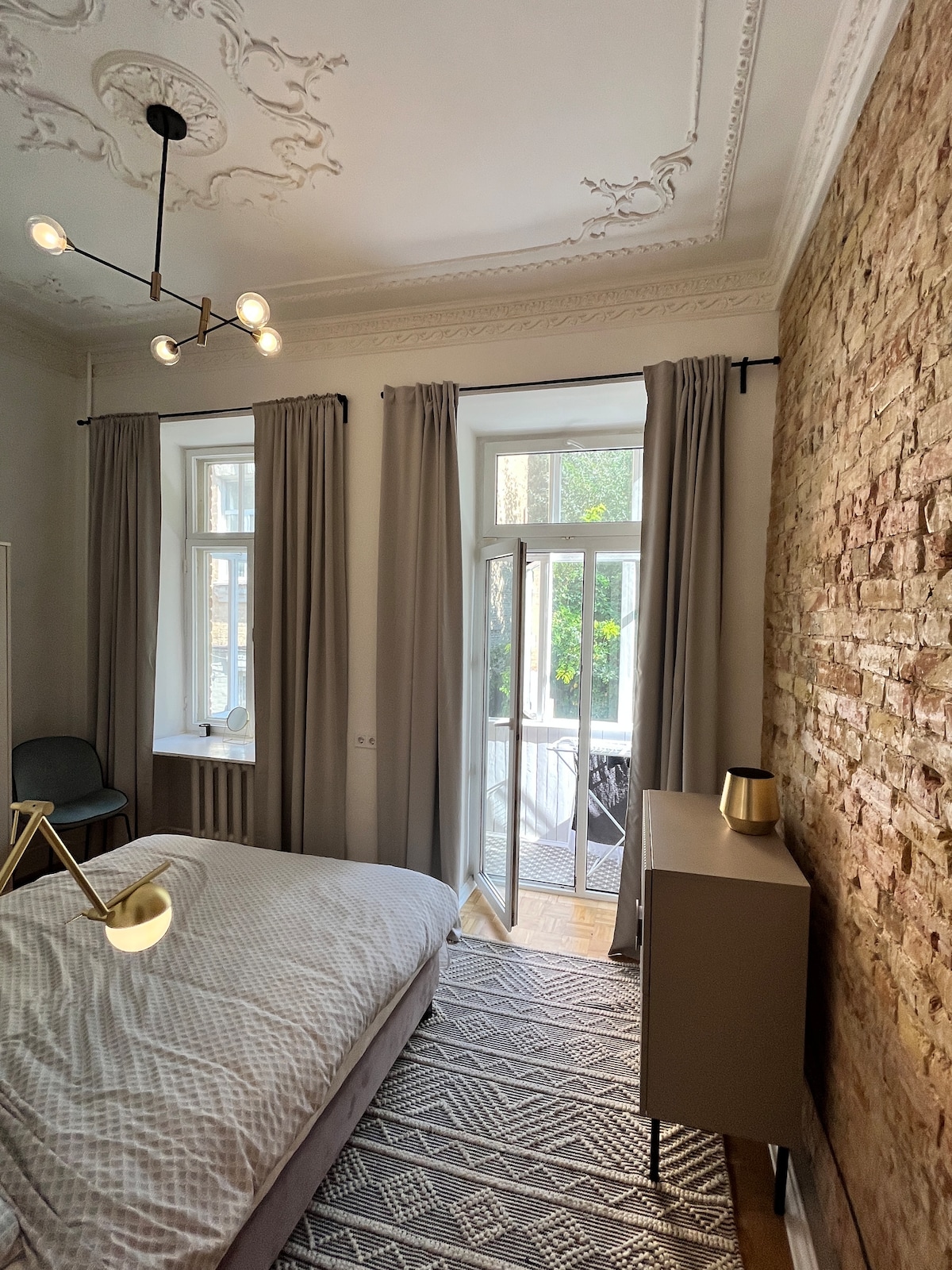 Appartement moderne, élégant et spacieux dans le centre-ville. Étage supérieur donnant sur la cour, ce qui rend l'appartement très calme et confortable, ce qui est important pour votre séjour paisible avec les enfants. Une épicerie, une banque et des restaurants sont situés dans les bâtiments voisins. Le parc, les monuments architecturaux et les lieux de divertissement sont accessibles à pied. Bienvenue et bon séjour.