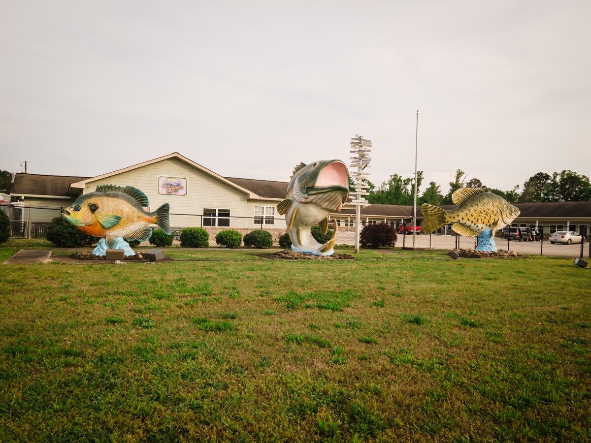 *Chambre confortable Big Fish Lodge avec piscine et pavillon*