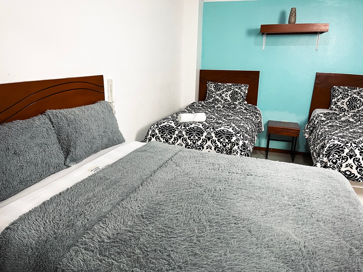 Nous sommes un hôtel qui offre à ses clients qui voyagent pour le repos, le plaisir ou les affaires, une atmosphère familiale, confortable, calme et sûre, qui rendra leur séjour agréable. * L'hôtel bénéficie d'un excellent emplacement, il est central avec un accès aux routes principales, aux transports publics et privés. * Les chambres sont confortables, propres et très agréables. * Notre personnel est aimable et respectueux.