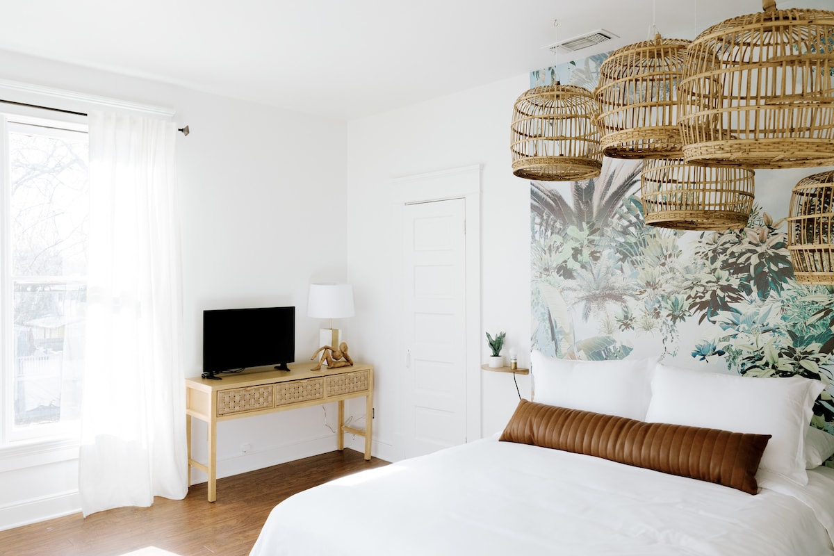 Nous avons récemment transformé notre garage en un magnifique studio. Nous avons équipé le logement d'une télévision à écran plat de 50", d'un ensemble complet de chaînes câblées, d'une barre de son Bose/d'un haut-parleur Bluetooth, d'une connexion Internet haut débit, d'une douche à l'italienne avec deux pommes de douche et un siège, d'une cuisine complète avec cuisinière à gaz, d'une chambre avec un lit Queen Size, d'un salon avec un canapé convertible, d'un patio privé clôturé avec foyer, d'un parking hors de la rue à 30 pieds de la porte, et de tout ce dont vous avez besoin pour une nuit tranquille et/ou une escapade de week-end. Animaux acceptés.