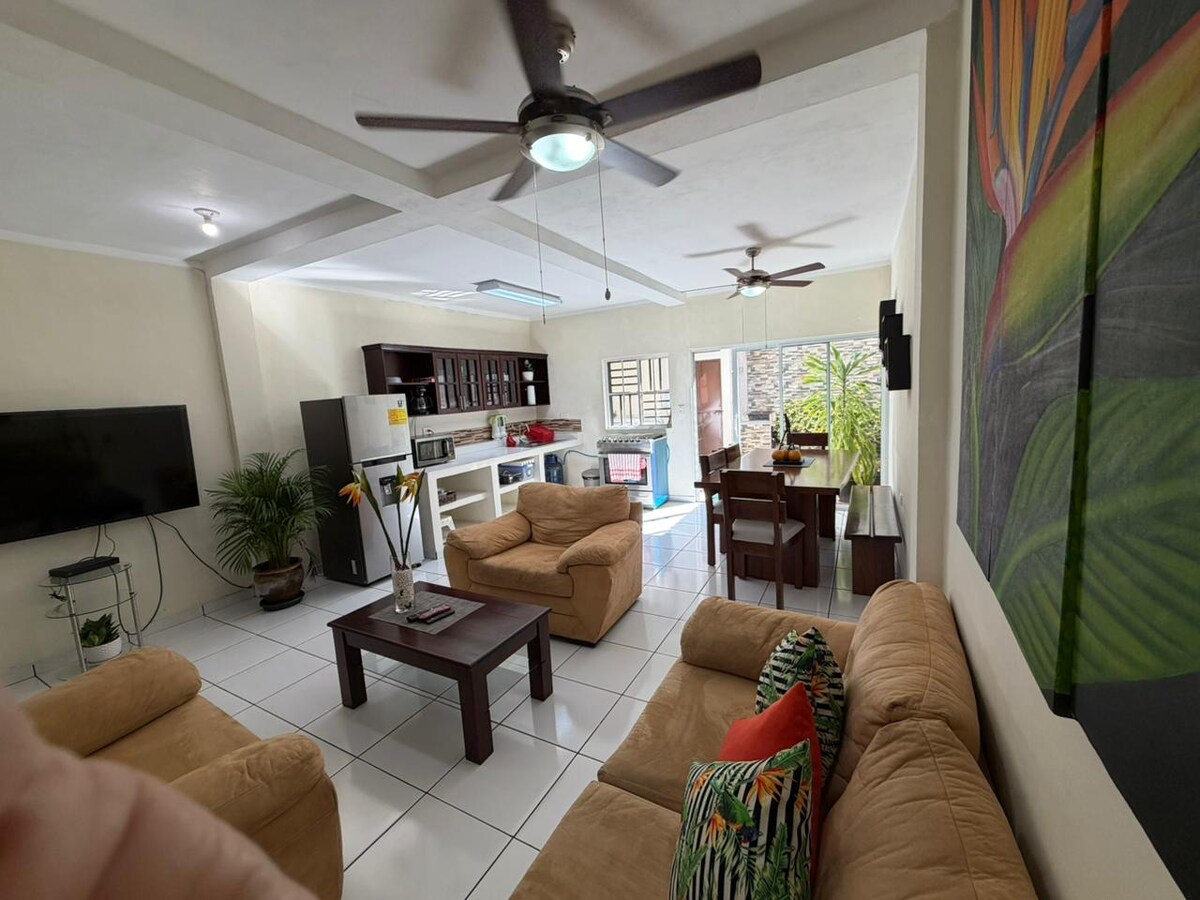 Profitez d'une expérience élégante dans ce logement central. Maison sans encombrement, communauté privée, propre et confortable au cœur des zones les plus populaires de Santa Ana. Courte distance du centre commercial Metrocentro et de la Plaza Crystal. Regardez des films dans l'espace ouvert climatisé. Préparez un bon repas dans une cuisine entièrement équipée ou profitez de tous les restaurants de la région qui offrent la livraison à la communauté. Savourez votre café du matin ou votre vin du soir dans un patio couvert de pergola avec des lumières de bistro.