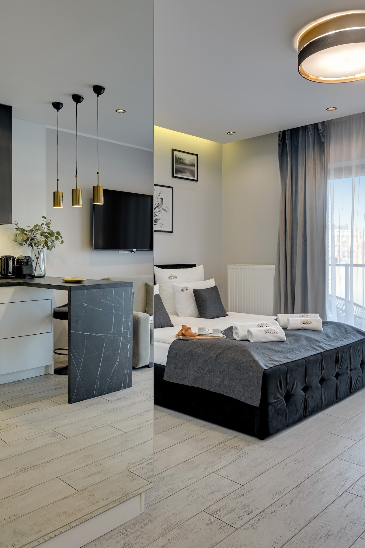 Platinum Apartment (47m2) est un endroit ensoleillé, confortable, moderne et entièrement équipé. L'appartement est situé au centre de Gdynia, à 5 minutes à pied de la plage, du port, de la gare et des meilleurs restaurants. Vous venez en voiture ? Ne vous inquiétez pas pour la zone de stationnement payant, l'appartement dispose d'une place de parking gratuite dans le garage souterrain. L'appartement est entièrement équipé (cafetière, fer à repasser, sèche-cheveux, serviettes, cosmétiques)