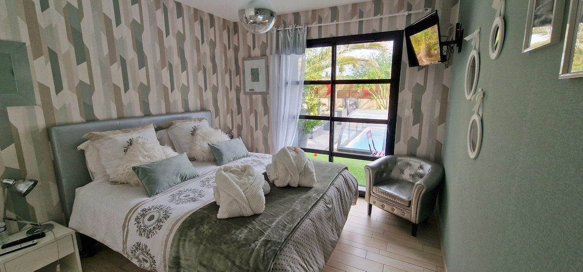 La chambre se situe dans notre maison spacieuse avec terrasse, avec accès à la piscine et au SPA (sans supplément). Aucun espace partagé avec l'hôte et/ou d'autres voyageurs. Au fond d' une impasse paisible d'un quartier calme de La Roche-sur-Yon. Située à 30 mn des Sables d'Olonne et d'O'Gliss Park, à 45 mn du Puy-du-Fou et à 10 mn de Vendespace . Accueil chaleureux et convivial. Logement non fumeur (espace extérieur autorisé). Animaux non acceptés. Accès wifi gratuit.