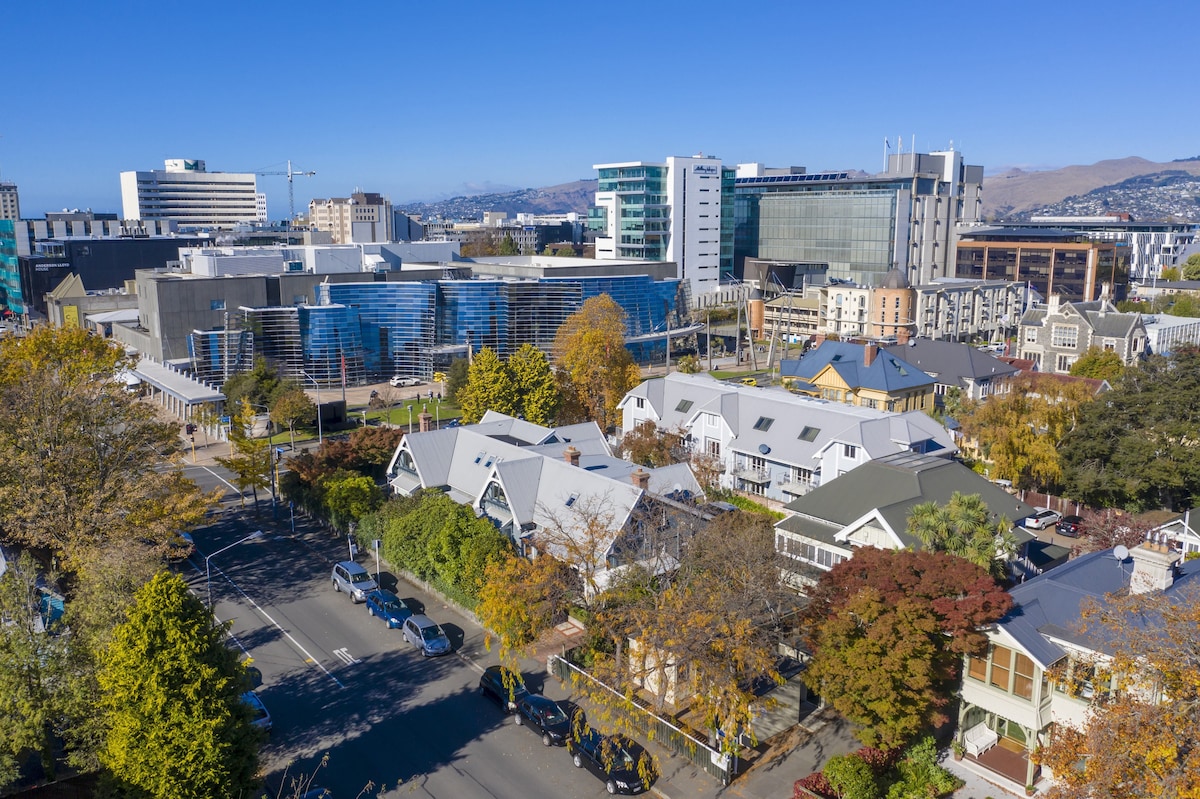 Chambre confortable avec salle de bain privée et petit déjeuner dans un endroit interurbain sûr. Hébergement idéal pour les voyageurs en solo souhaitant séjourner au cœur de Chch, à 10 min à pied du centre-ville, de la place de la Cathédrale, de New Regent St, à 15-20 min à pied de l'échangeur de bus, du casino, des jardins botaniques et du parc Hagley. Petit déjeuner continental inclus, thé/café à volonté et avec un biscuit à l'arrivée. NB : aucuns frais de service supplémentaires.